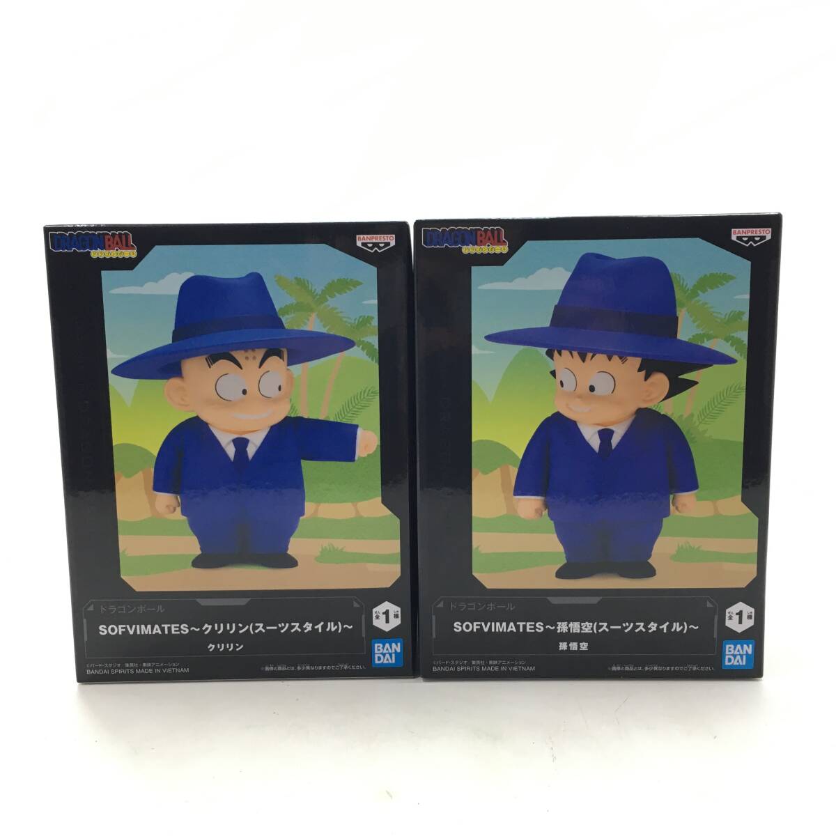 01w2368 未開封品 ① ドラゴンボール SOFVIMATES 孫悟空 クリリン スーツスタイル プライズフィギュア 2点セット 中古品