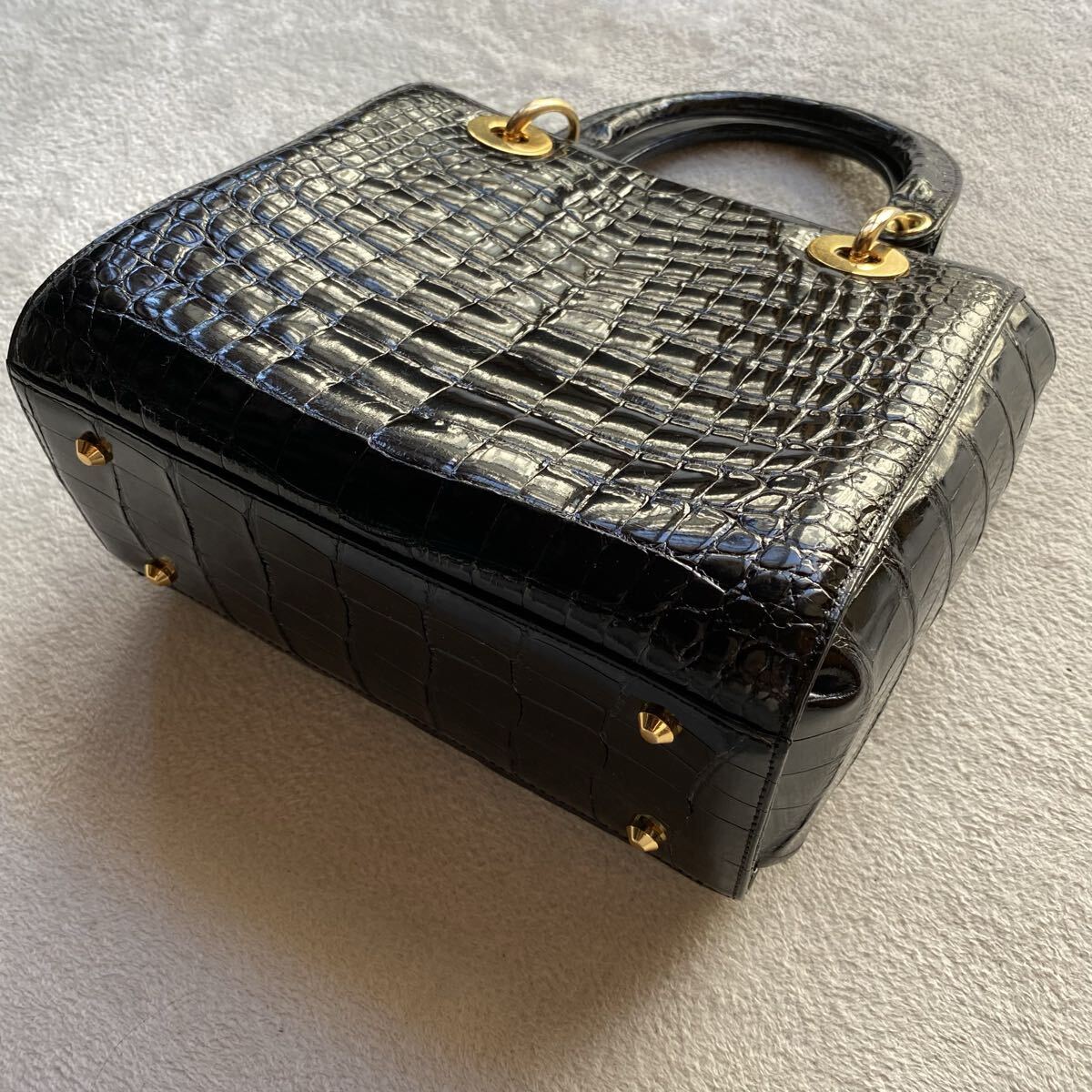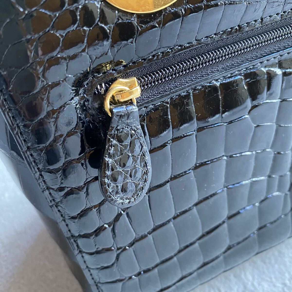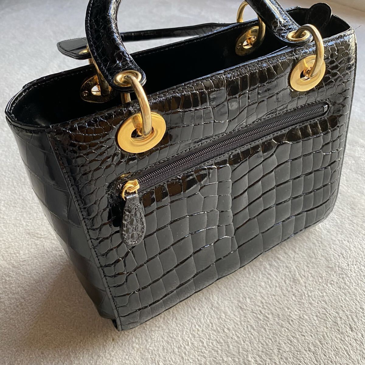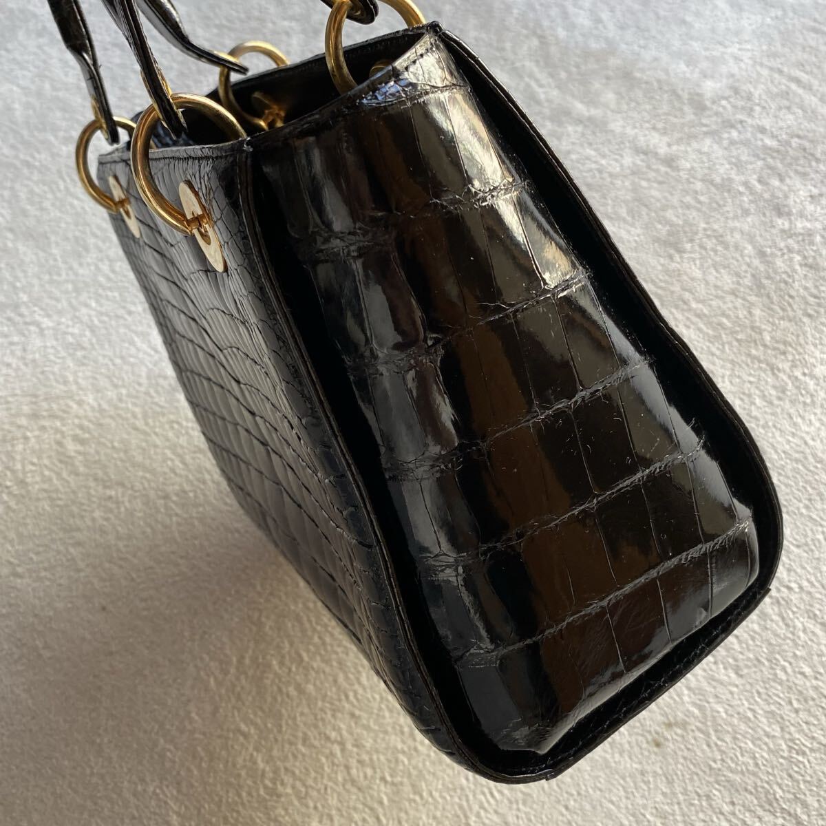 3点送料無料☆ 美品 艶感SANPO クロコダイル ワニ革 黒 ハンドバッグ 証明書 ギャランティー シャイニングクロコ  ゴールド金具JRA認定