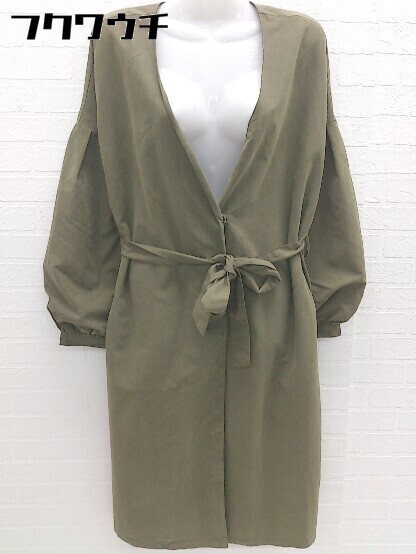 ◇ ◎ natural couture ナチュラルクチュール NICE CLAUP ウエストリボン付 長袖 カーディガン サイズF カーキ系 レディース