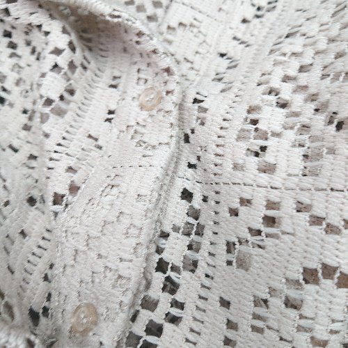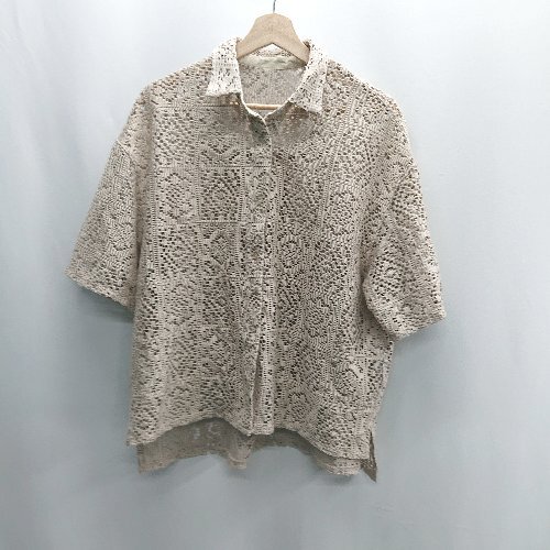 ◇ ⊂ qout 透け感 レース 半袖 ブラウス サイズM ベージュ レディース E