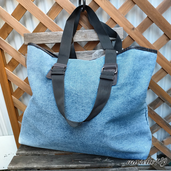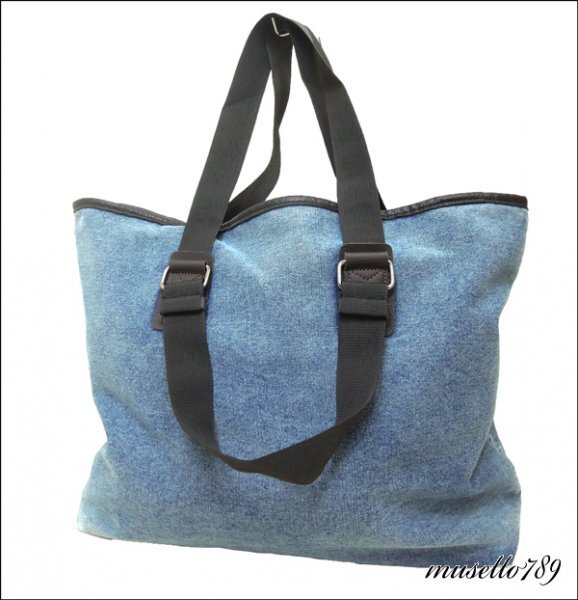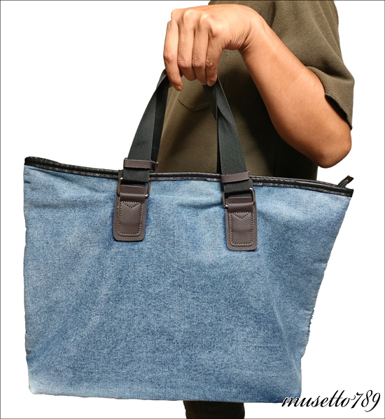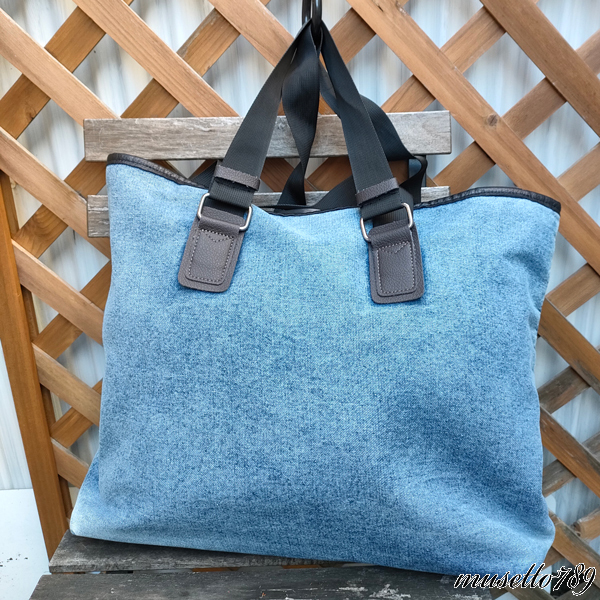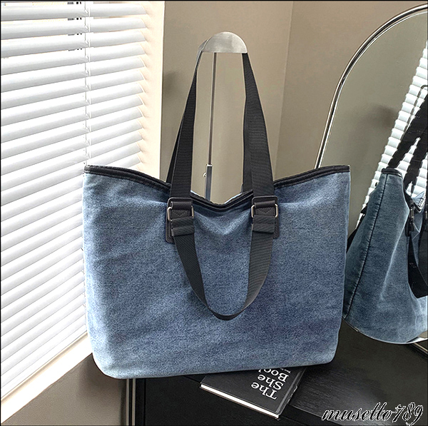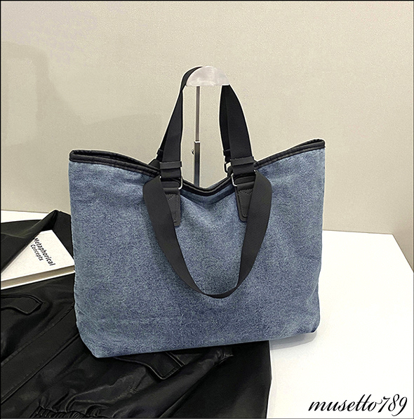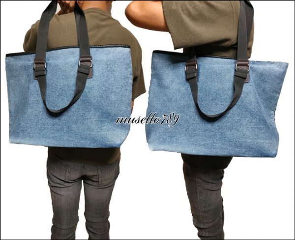 2way!◆大容量 デニム調 ボストンバッグ ブルー◆トート 帆布 鞄 限定 使い勝手抜群 A4/雑誌楽々!柔らかで丈夫 少数入荷!1円~ 青 1074p