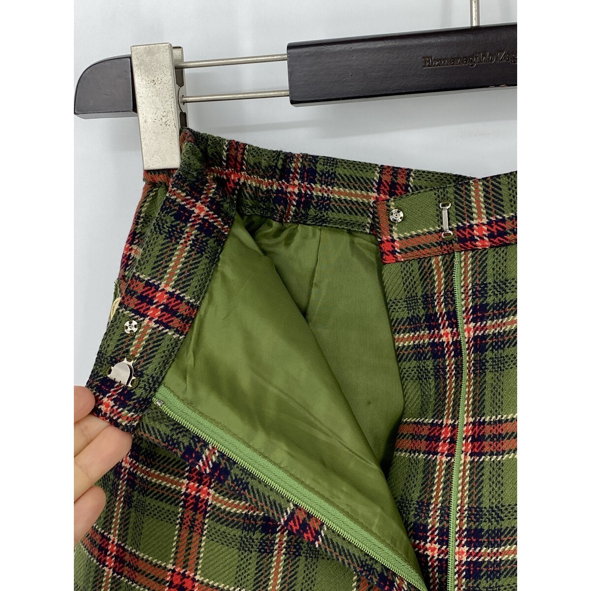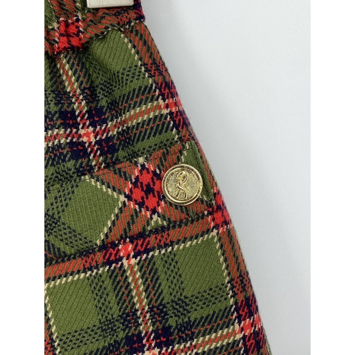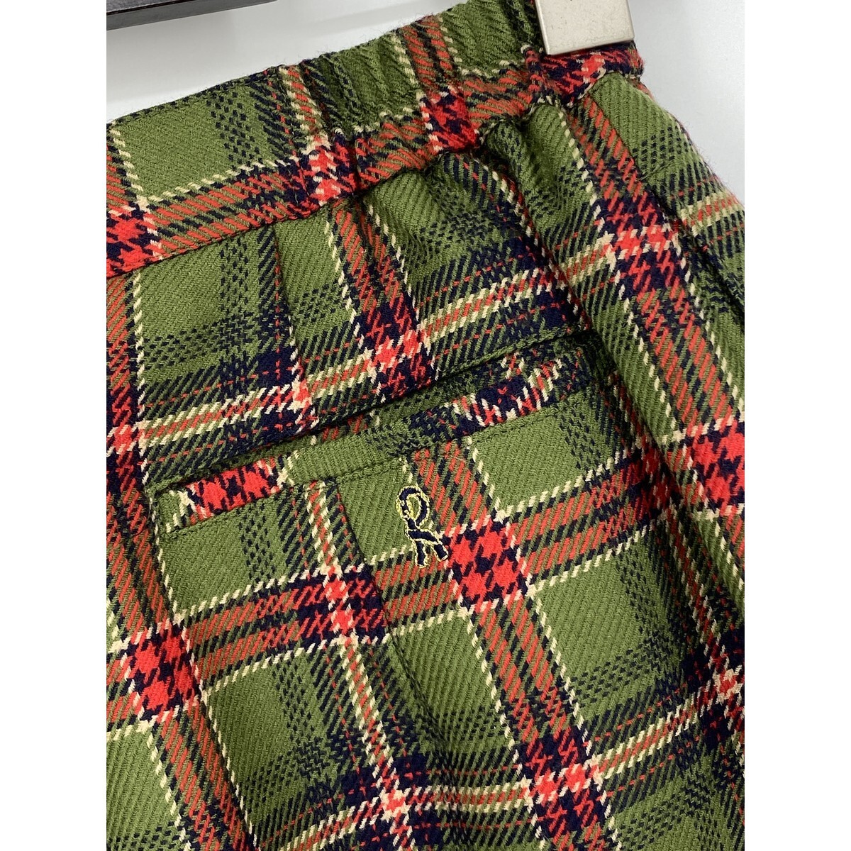 B0191/極美品 ROBERTA DI CAMERINO カメリーノ ウール チェック 金ボタン ロゴ刺繍 ウエストゴム ハーフ ワイドパンツ 42 XL 緑 レディース