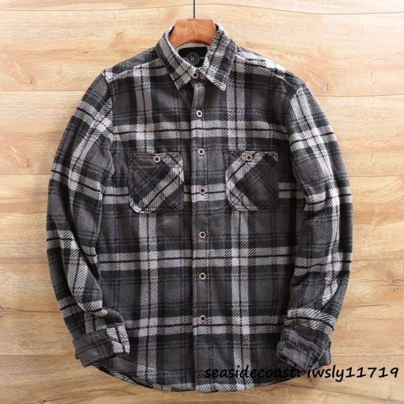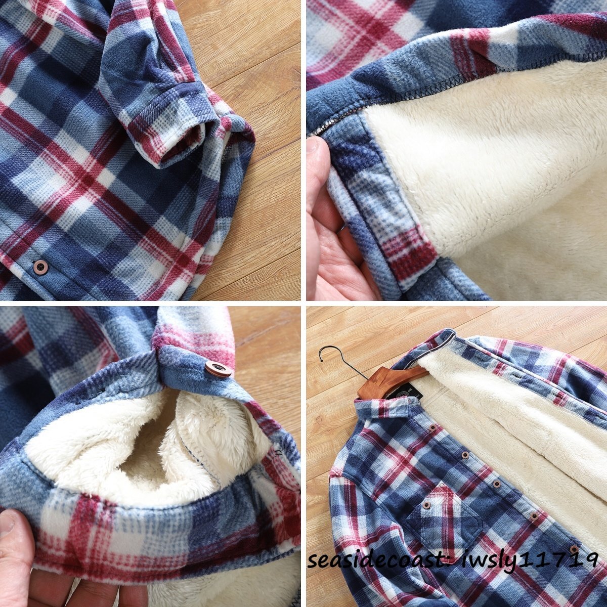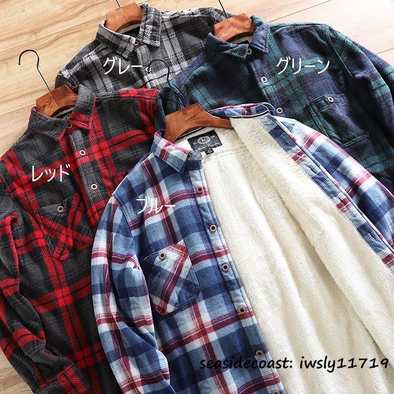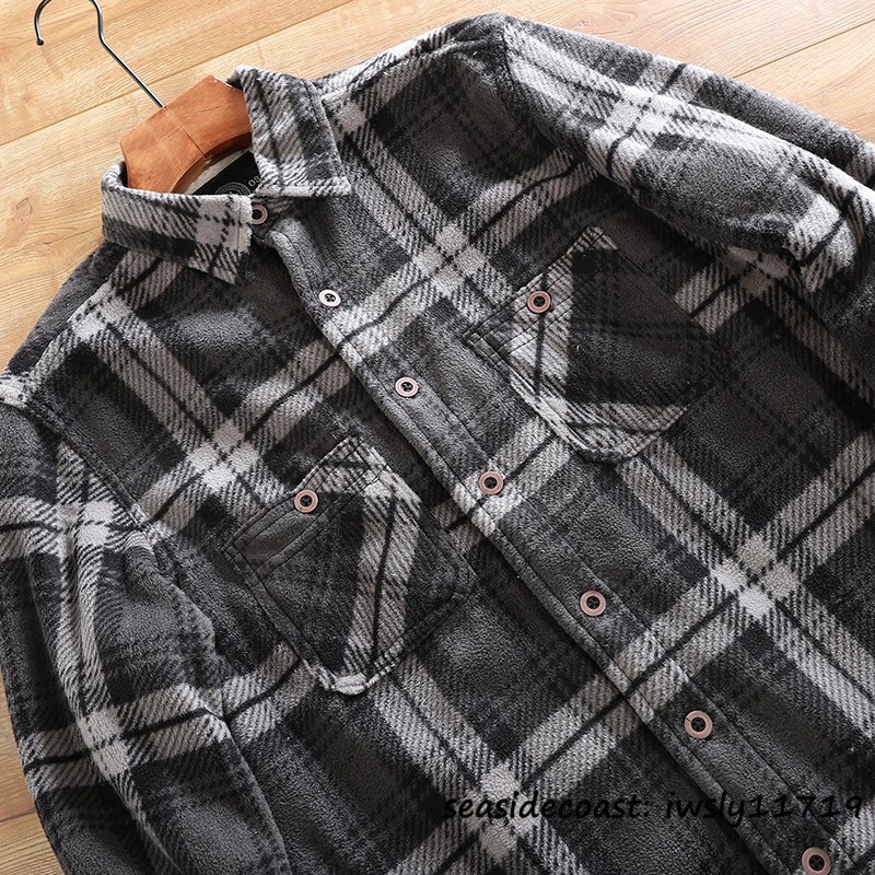 秋冬新品*裏起毛 メンズシャツ チェック柄 厚手 防寒 保温 フリース 暖かい ゆったり 通勤 ビジネス ワークシャツ カジュアル グレー S