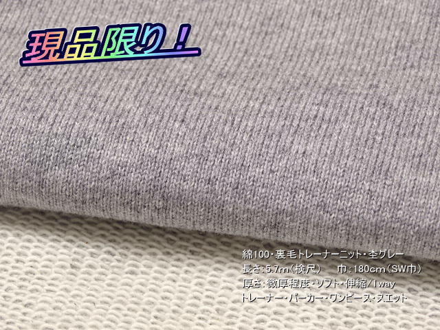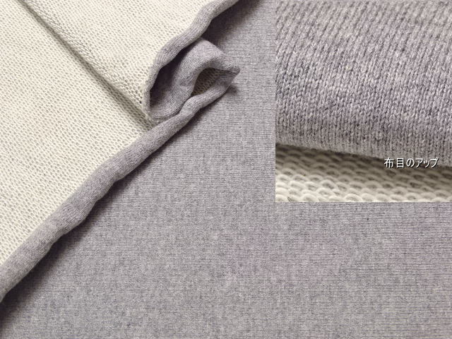 商品は、綿100・裏毛トレーナーニット・杢グレーでございます。