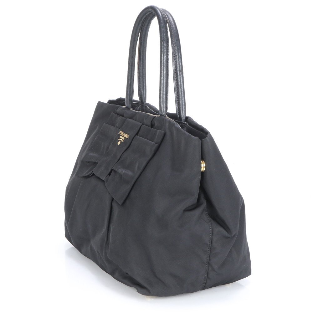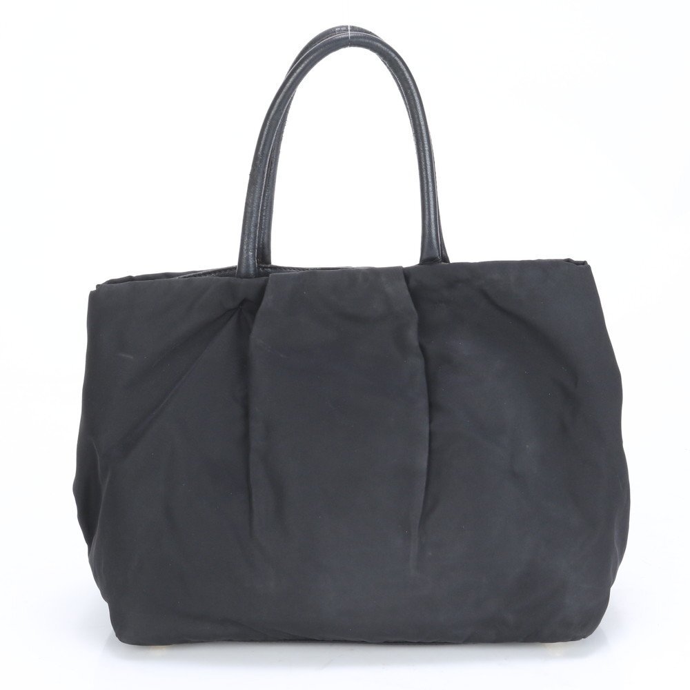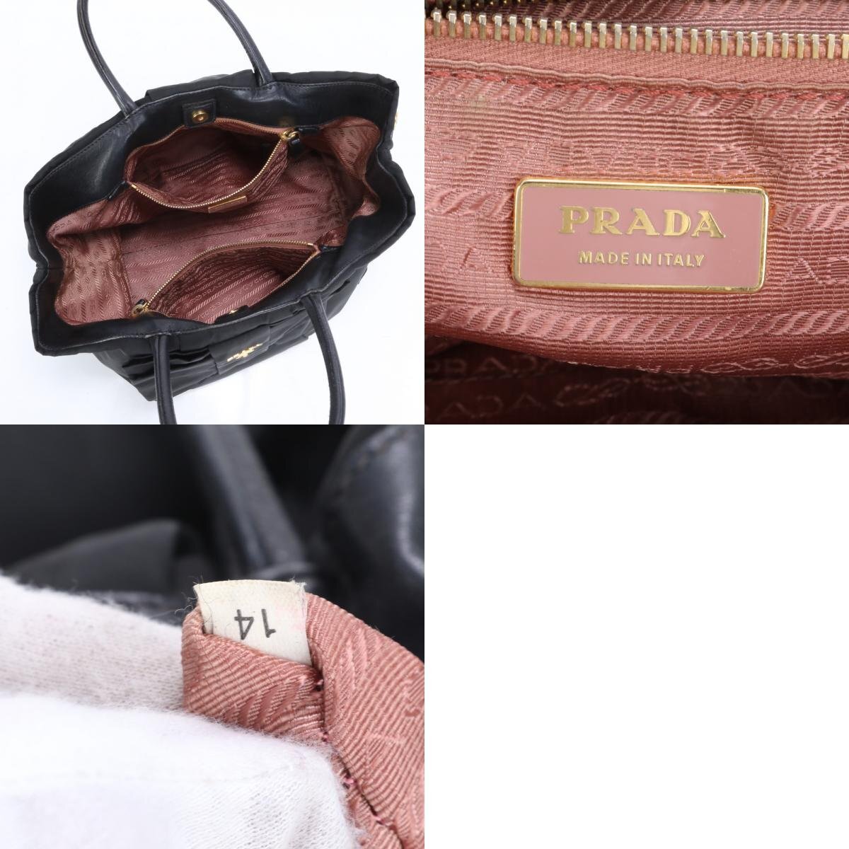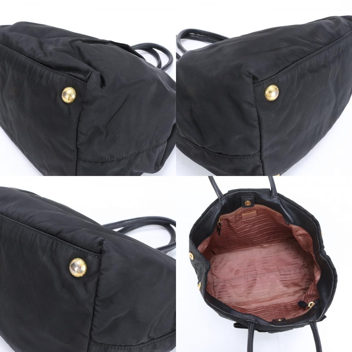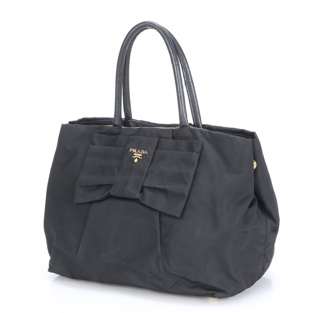 1円■美品■プラダ■テスート ナイロン リボン デザイン レザー トート バッグ ショルダー ハンド ブラック 黒 レディース EUM BY7-9