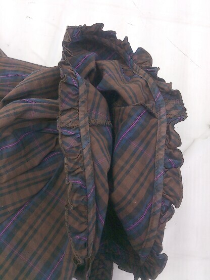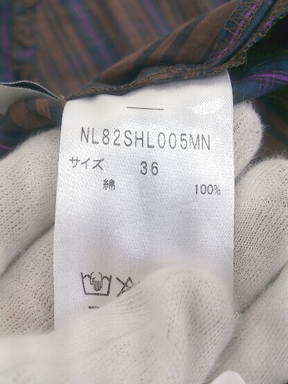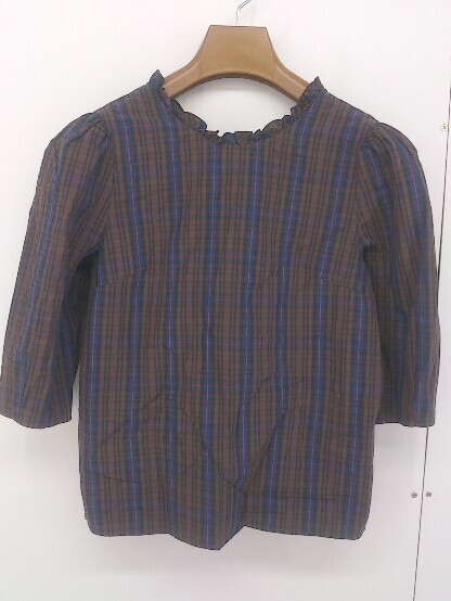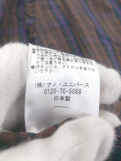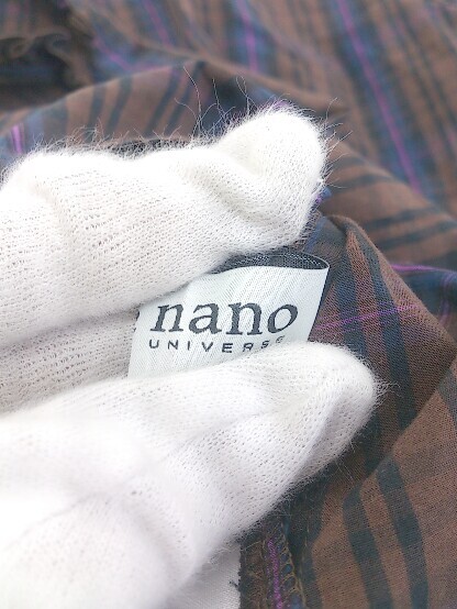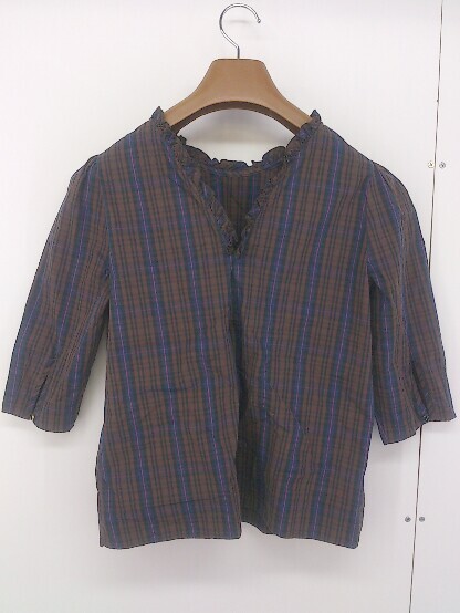 ◇ nano universe ナノユニバース チェック 五分袖 ブラウス カットソー サイズ36 ブラウン系 マルチ レディース