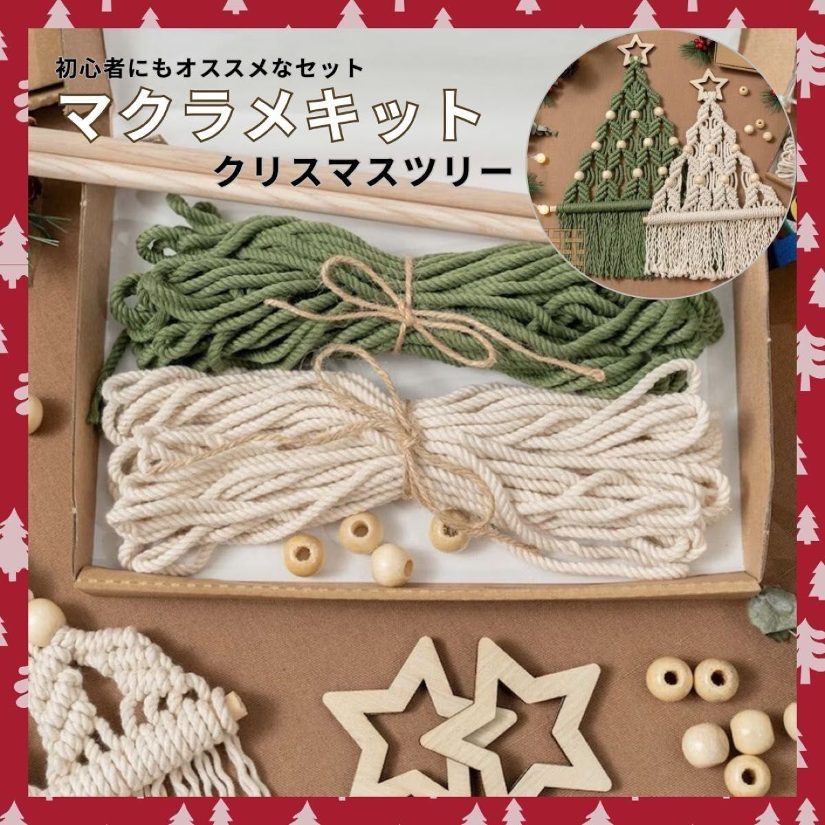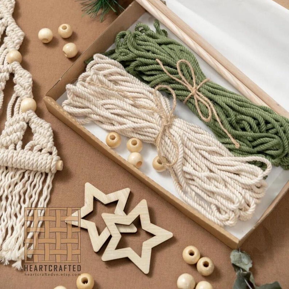 ロープ、木製フレーム、ビーズなど必要な材料が