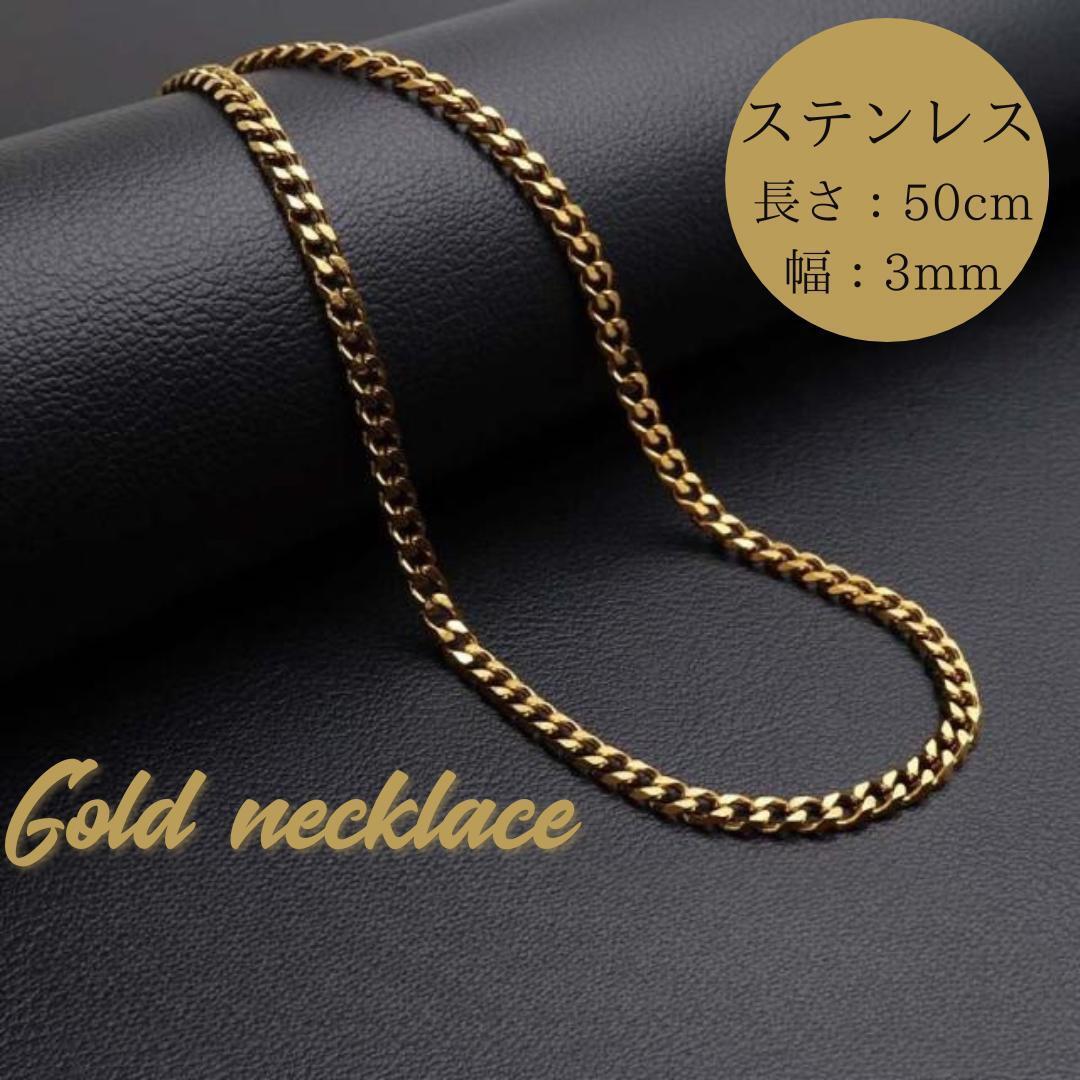シンプルながら存在感のあるゴールドカラーの6面喜平チェーンネックレスです。
