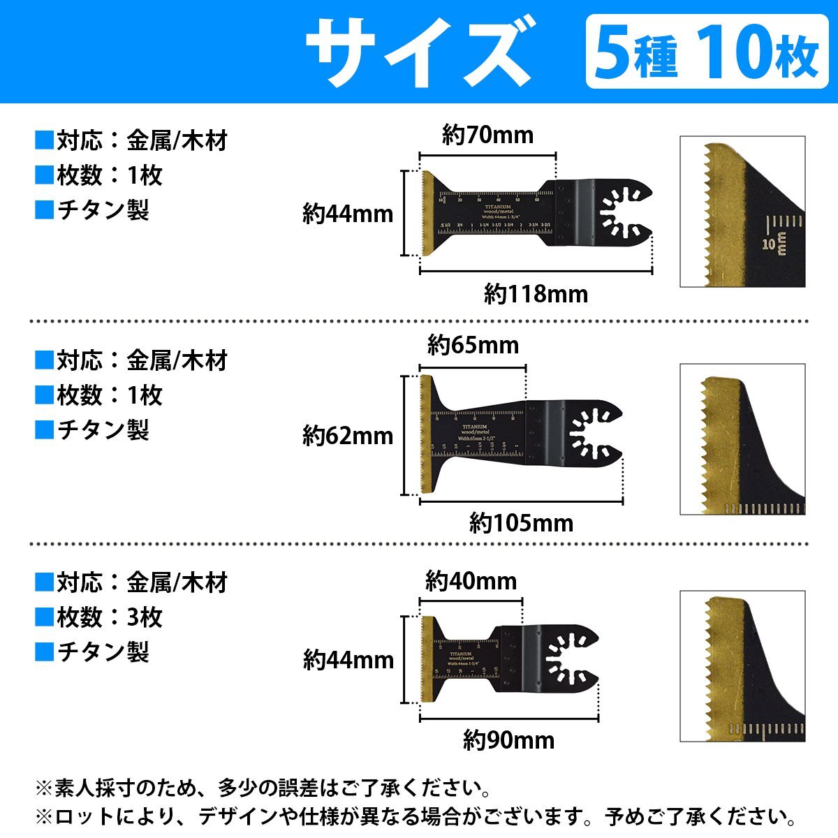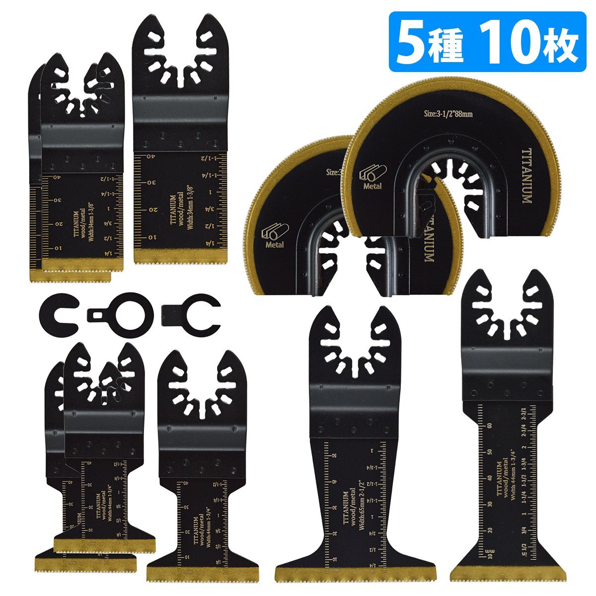 【送料250円】刃先チタンメッキ 5種 10枚セット マルチツール 超硬 替刃 金属/木材 カットソー ブレード 替え刃 スターロック OIS 互換品