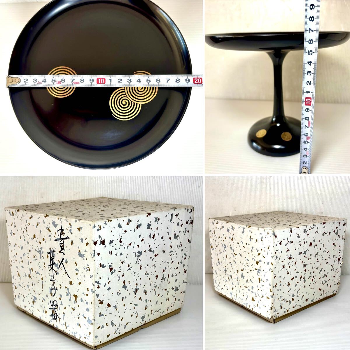 ★ 木製 真塗 本漆塗 貴人高杯 渦 紙化粧箱 菓子器 貴人点前 茶道具 113018