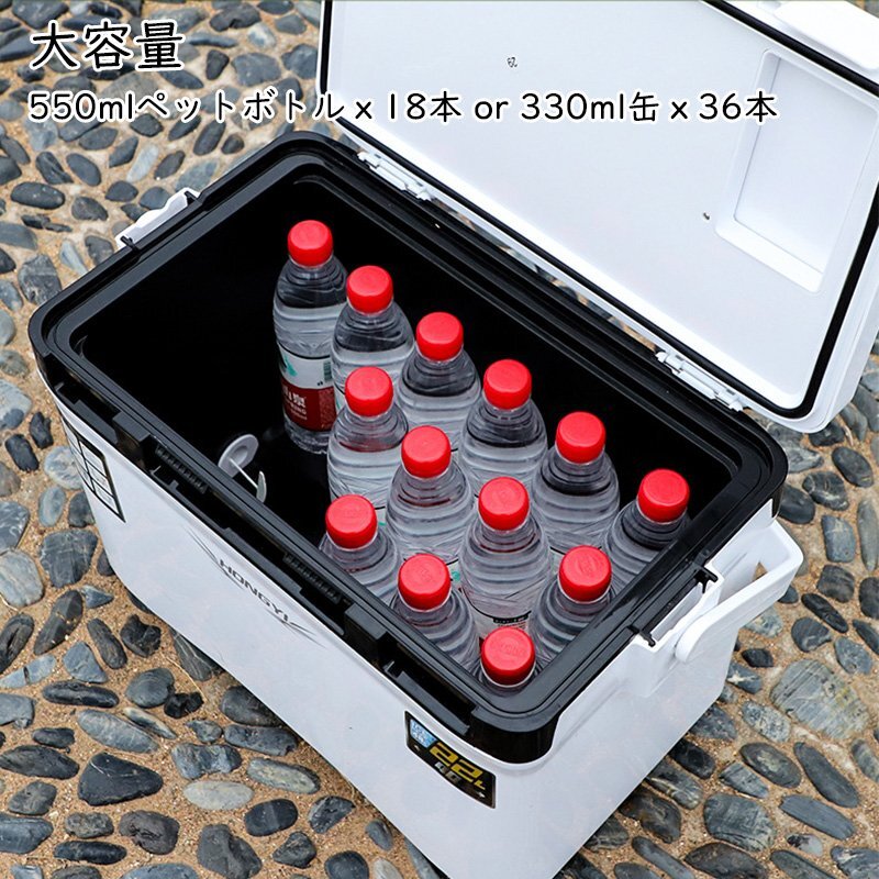 釣り用クーラーボックス 容量22L 座れる頑丈マッスルボディ 防水 断熱材保温保冷 ハンドル/水栓/肩ベルト付き 天窓なし 釣り保冷力48h 黒