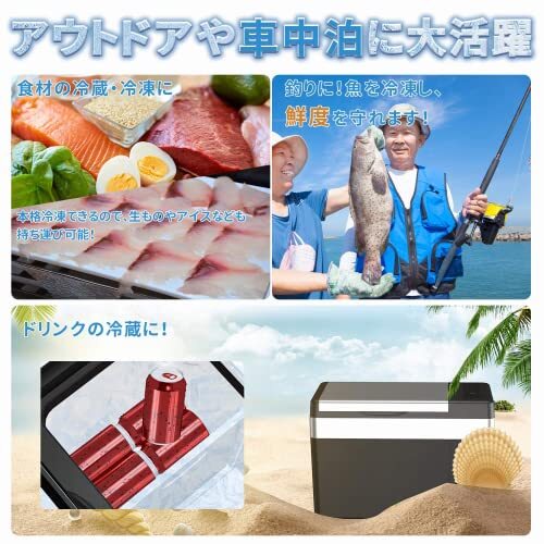 【35分で25℃から-22℃まで】①家庭用冷蔵庫と同じ、コンプレッサー式のポータブル冷蔵庫なので、-22℃~10℃調整でき、35分で25℃から-22℃まで冷却でき、冷却速度が速いです(環境温度が25℃、空の状態でテストした結果)。②冷却部品が内壁四面を包んでおり、四面からも冷却できます。③磁気蓋を採用しているため、冷気が漏れません。電源を切れても24時間保温できます。