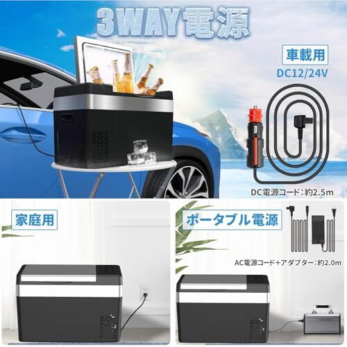 【3Way電源対応】DC電源(12V/24V)対応により、N-BOXなどの軽自動車から、普通車、ハイエースや大型トラックまで幅広い車種でご使用可能!AC電源を使い、家庭用冷蔵庫としてもご利用頂けます。