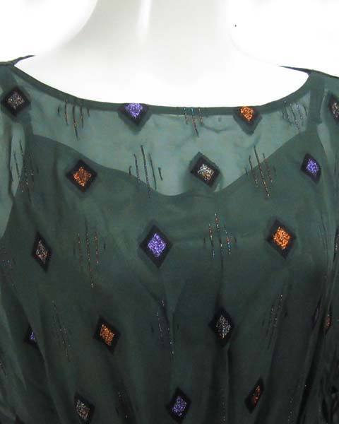 | 透け感のある華やかなワンピース。オレンジやパープル等のラメが刺繍がゴージャス。お出かけスタイルやちょっとしたパーティースタイルなどで活躍してくれます。大人キレイスタイルが楽しめます。 |