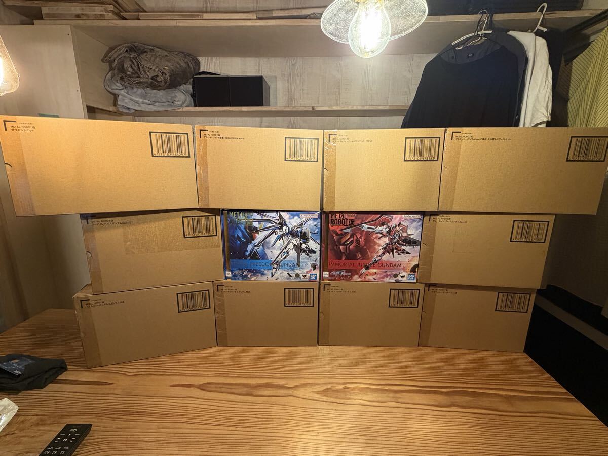 コレクションで集めていたmetal robot魂シードフリーダム版の12種になります。ライジングフリーダムとイモータルジャスティス以外は輸送箱が未開封になります。