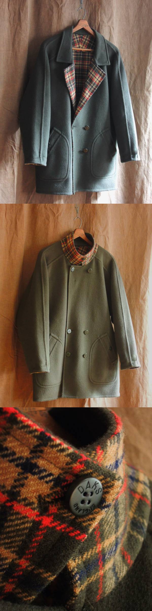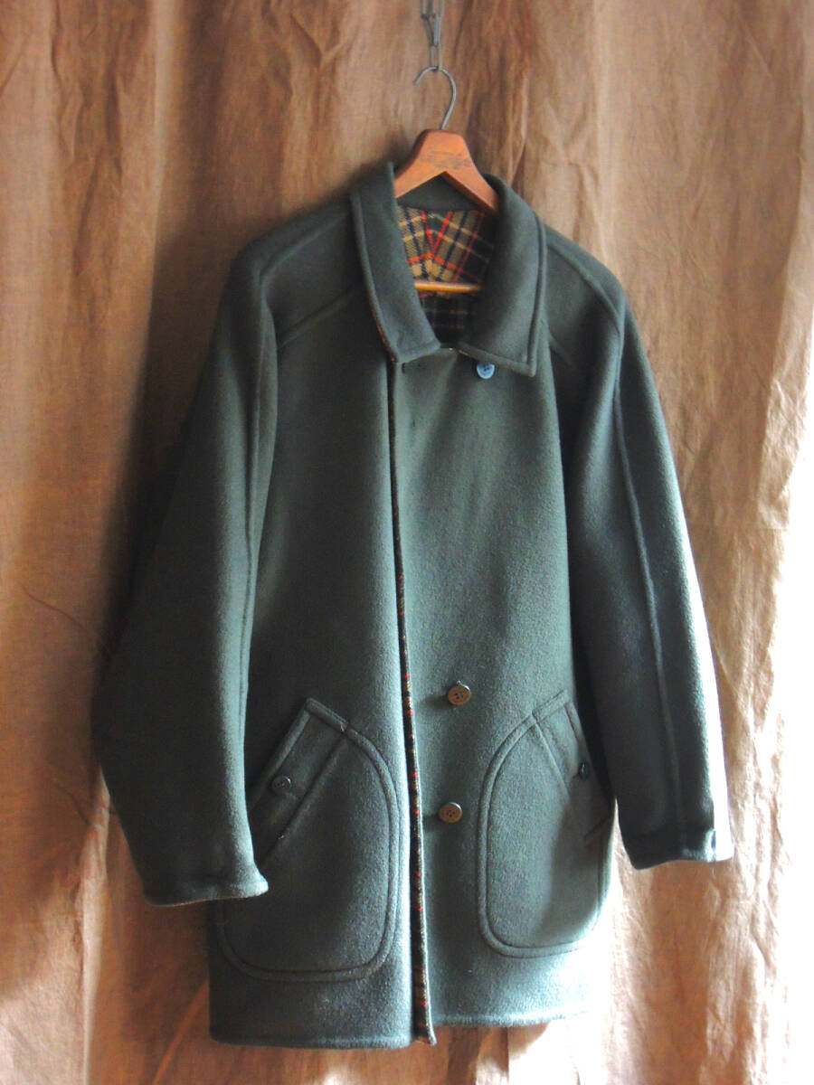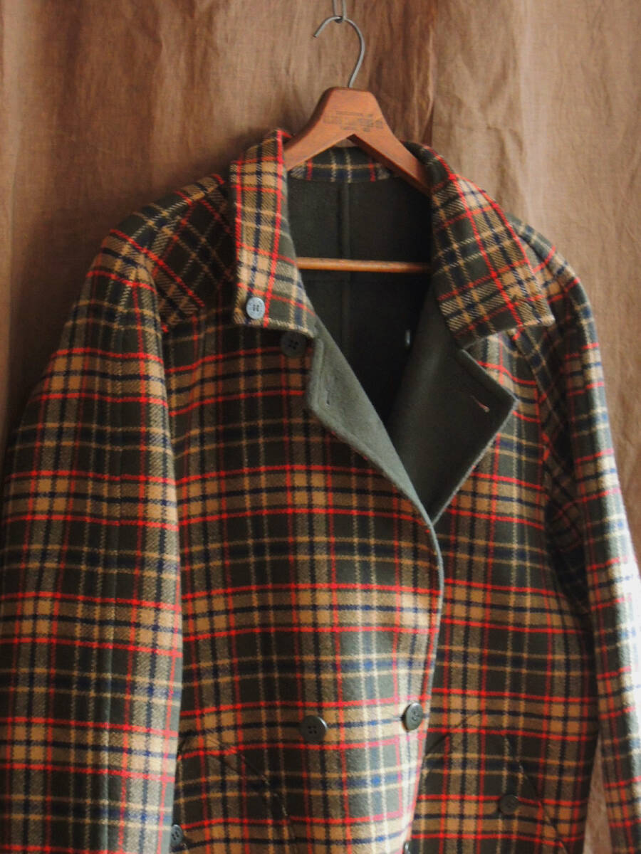 80s ビンテージ 1980年代 イングランド発DAKS ダックス両面 ダブルブレスト リバーシブル ウールコート ダブルフェイス メルトンジャケット