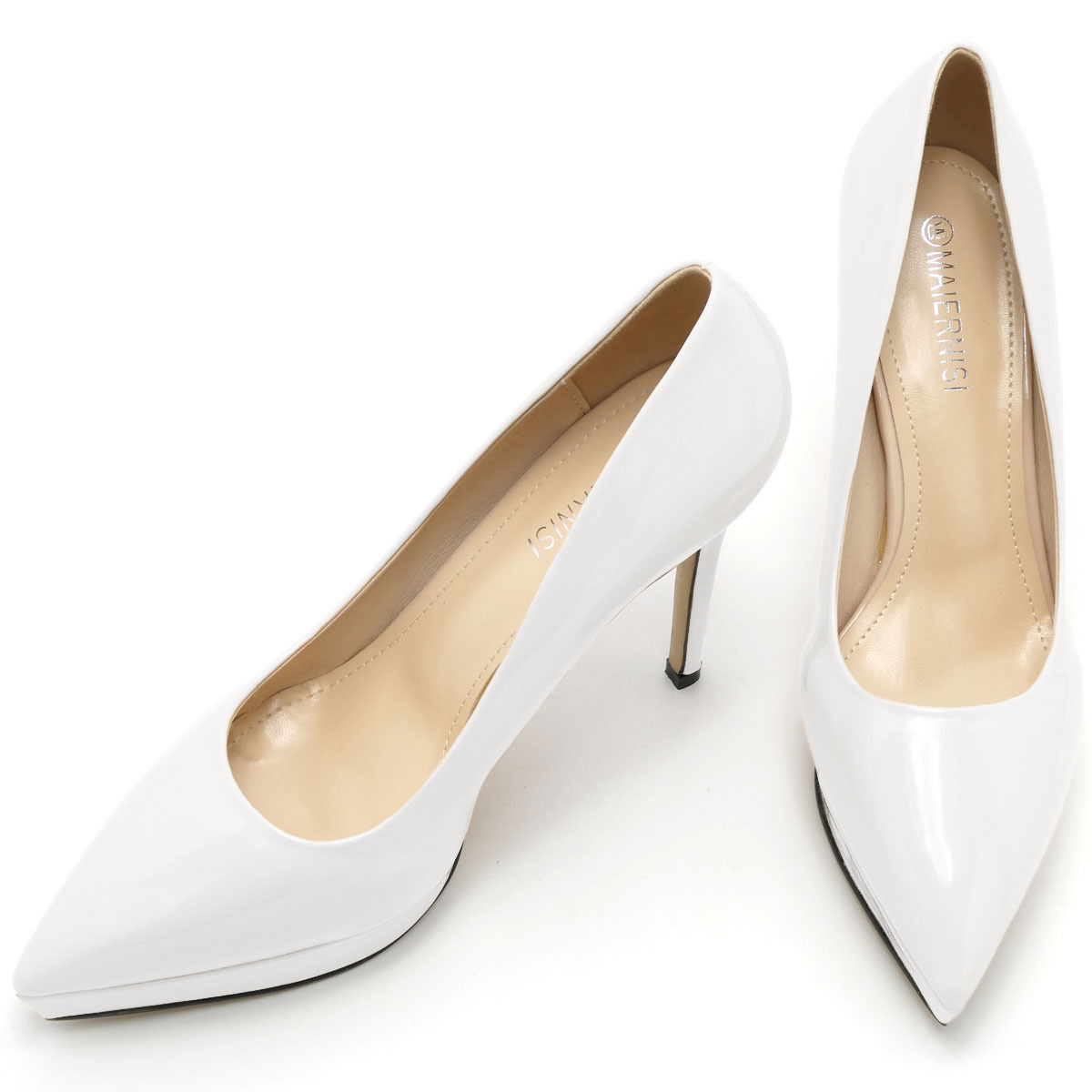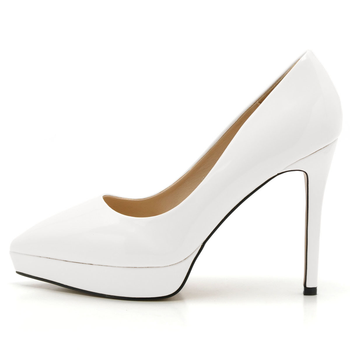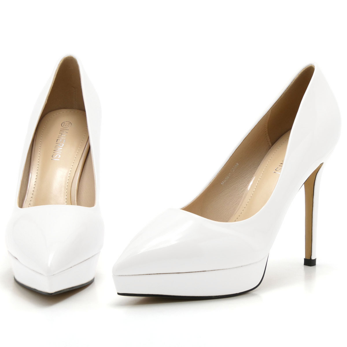 新品 大きいサイズ パンプス ホワイト 27cm 131400-44 エナメル調 前厚底ストーム ハイヒール