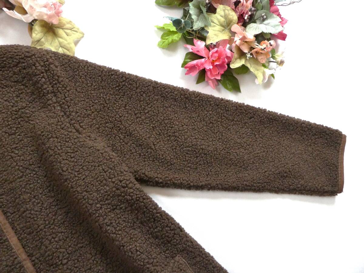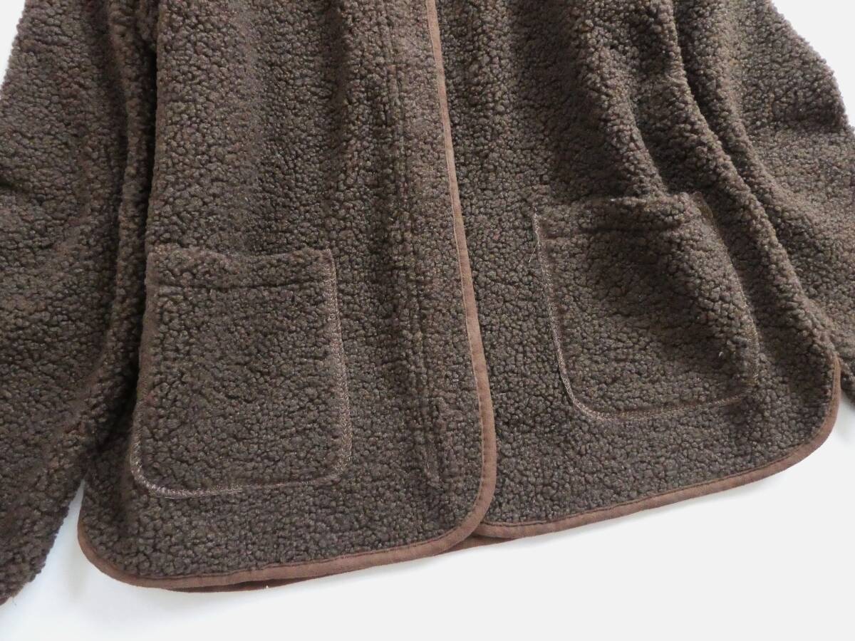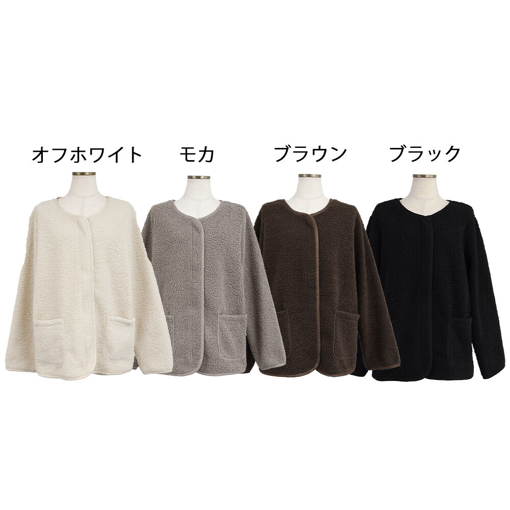 ゆったりサイズ【新品】暖かなボア素材♪ノーカラーでパイピング・ZIPの開閉★ポケットのあるジャケット・コート☆ブラウン ◆fit1027◆