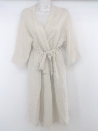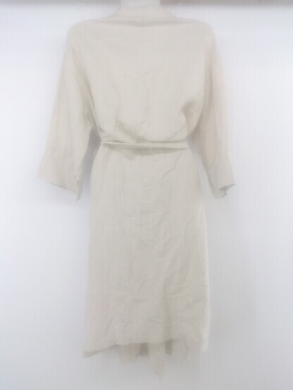 ◇ ◎ BEAMS HEART ビームスハート リボン付 リネン混 長袖 ガウン カーディガン ベージュ レディース P
