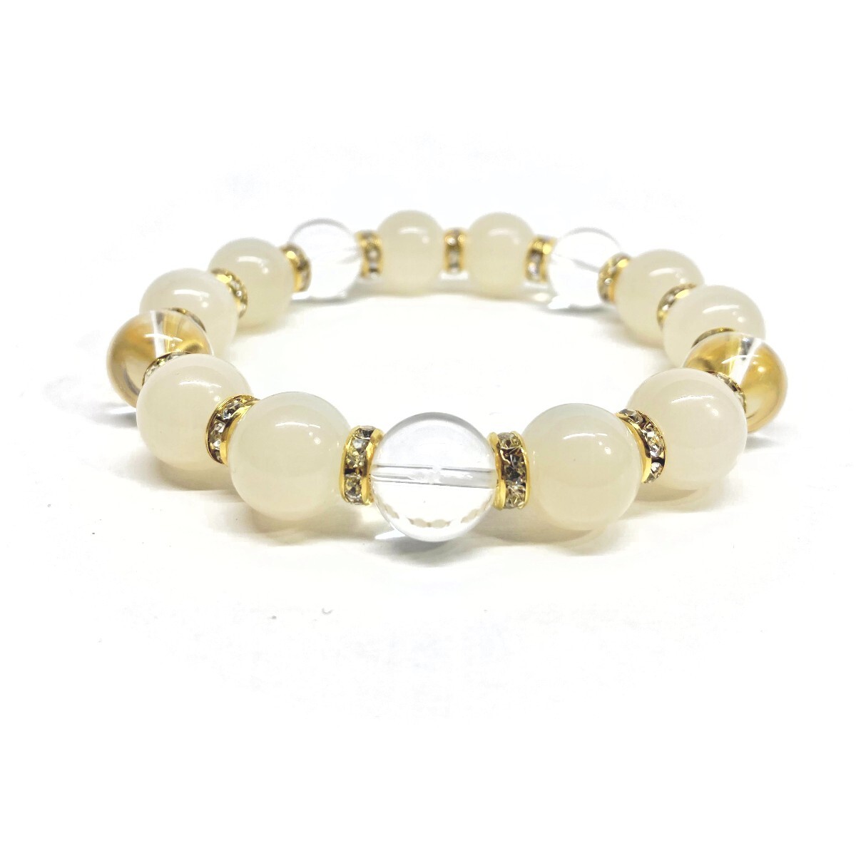 ムーンストーン&水晶 パワーストーン ブレスレット 12mm 天然石ブレス (ゴールド) 数珠ブレス メンズ・レディース 男性 女性 浄化♪