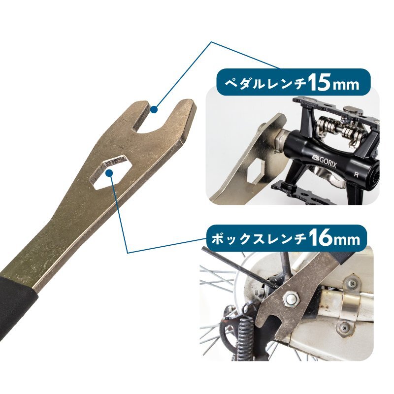 自転車のペダルの取り付け外しを行うための専用の工具です。 | |