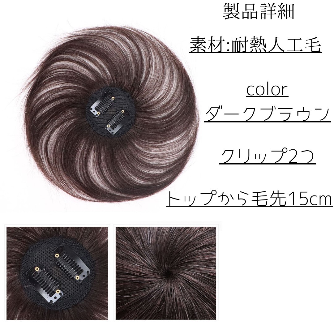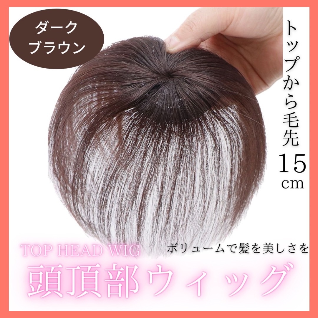 頭頂部ウィッグ 15cm ダークブラウン ヘアピース つけ毛 部分かつら 自然