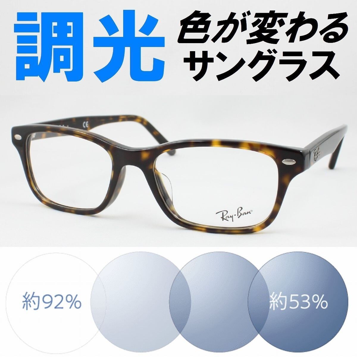 Ray-Ban レイバン RX5345D-2012 ライトブルー調光サングラス 度なし 伊達メガネ UVカット ウェリントン 超売れ筋 べっ甲柄