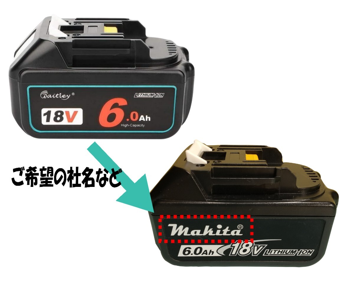 互換バッテリーの中でも評価が高いWaitley製に、社名、名前入れて、更に純正風にするシールです。