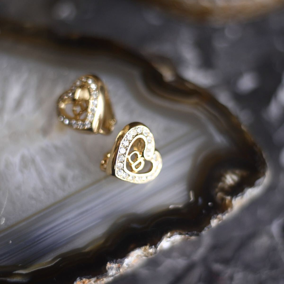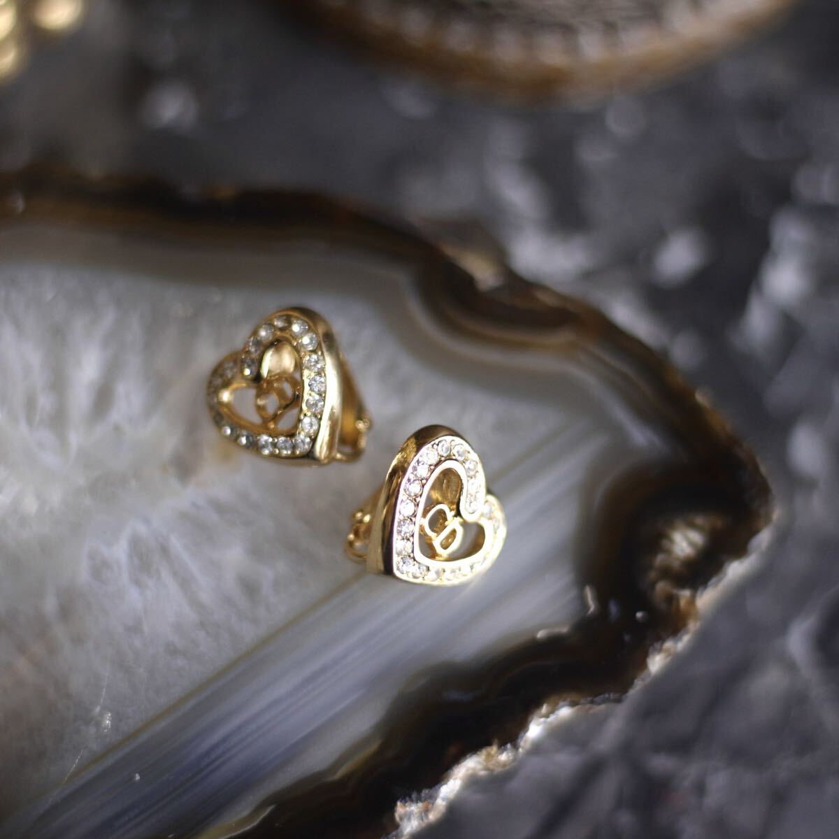 Christian Dior LOGO CLEAR STONE HEART DESIGN EAR CLIPS/クリスチャンディオールロゴクリアストーンハートデザインイヤリング