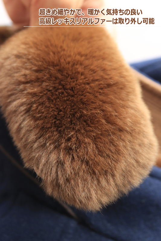 ファーは脱着可能でキメの細かいレッキスラビットです。