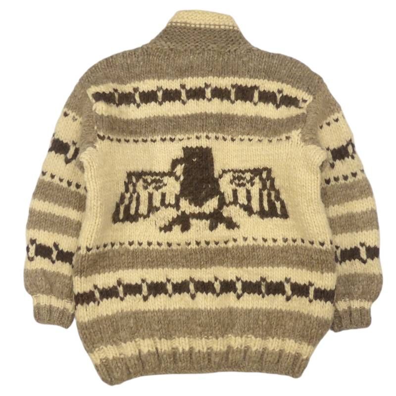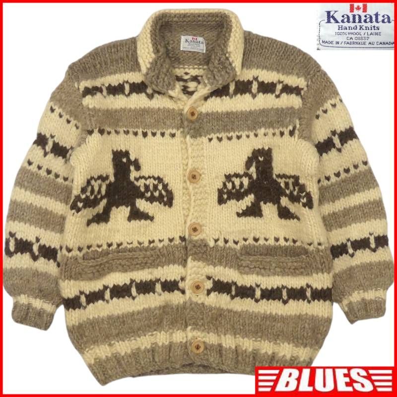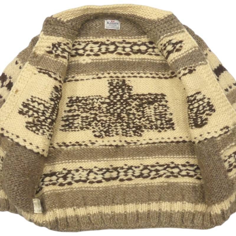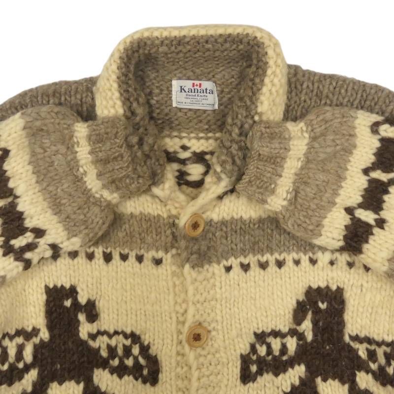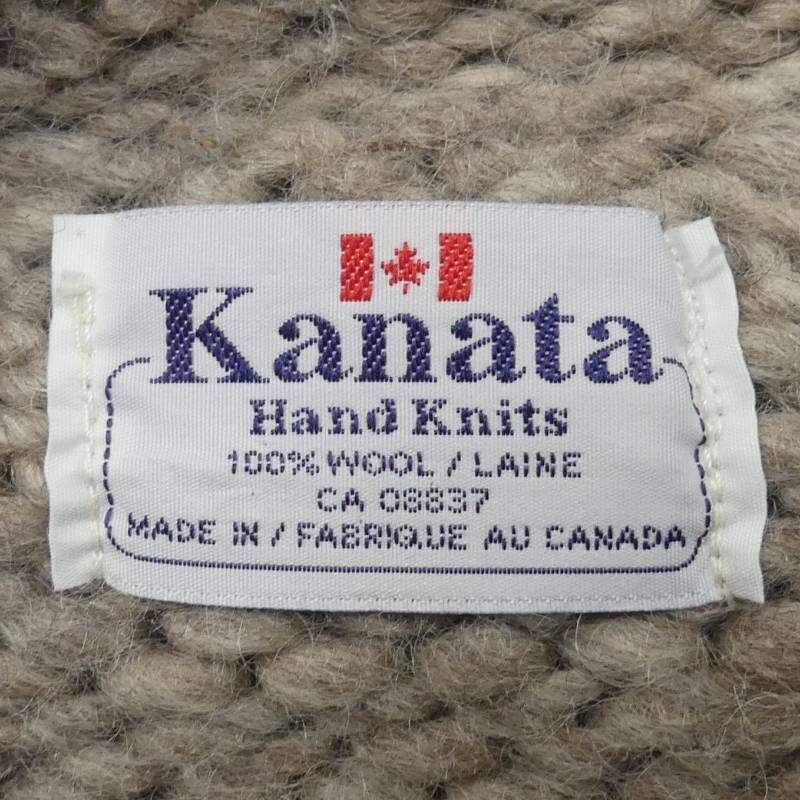 即決★カナダ製 KANATA★メンズ L位 カウチンセーター カナタ 茶 ベージュ ウール ハンドニット セーター カーディガン メープルボタン