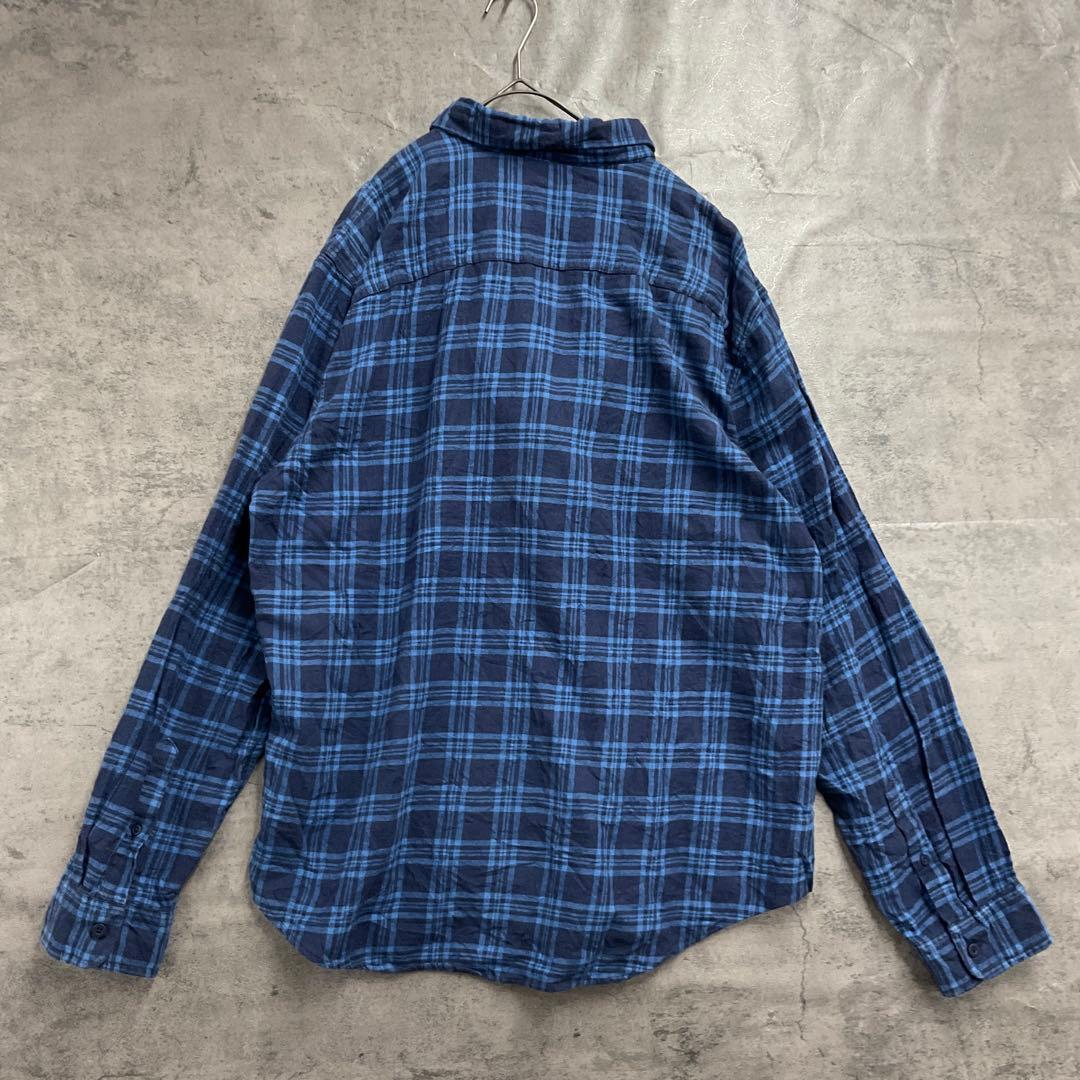 柔らかい質感のチェックシャツで、落ち着いた青系カラーが魅力のカルバンクラインジーンズ。古着らしい雰囲気がありつつも上品に着られる1枚で、カジュアルから古着コーデまで幅広く活躍します。