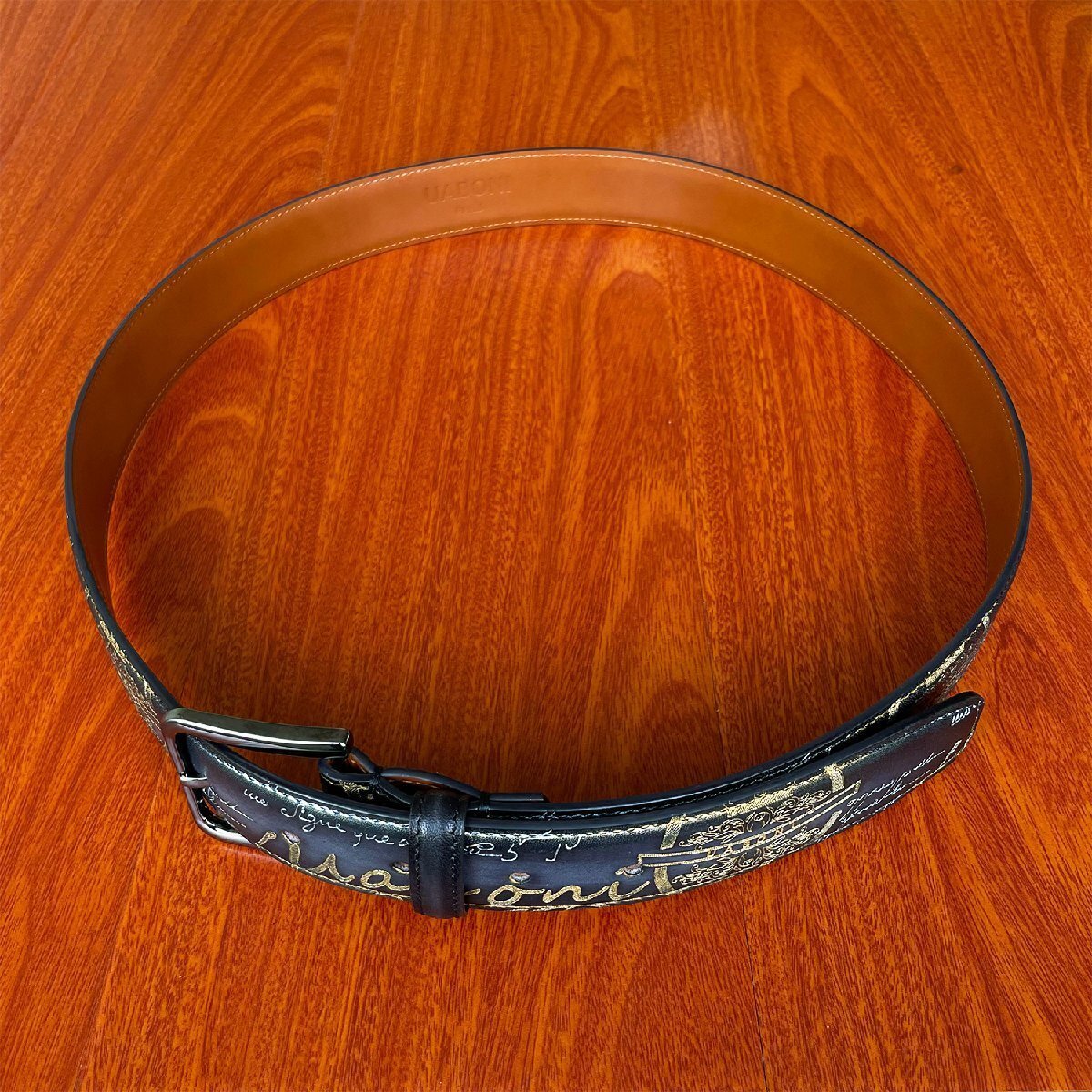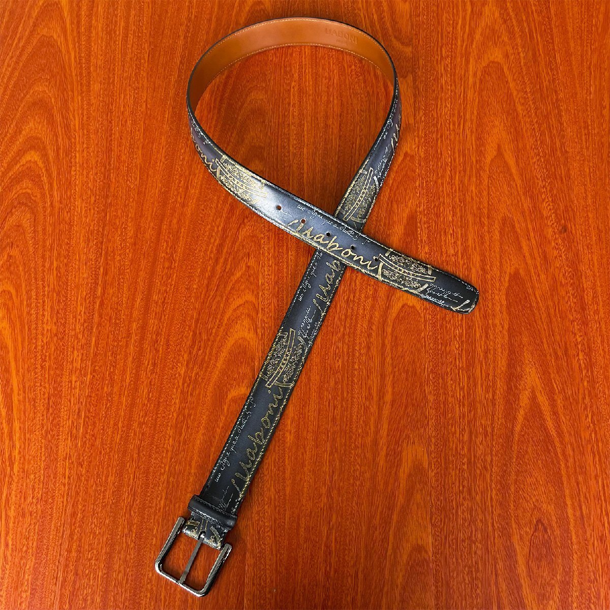 貴重品 EU製 定価9万◆UABONI*ユアボニ*幻のパティーヌ*ベルト◆手染 ゴールデン 調節可能 本革 レザー スーツ ビジネス 紳士用
