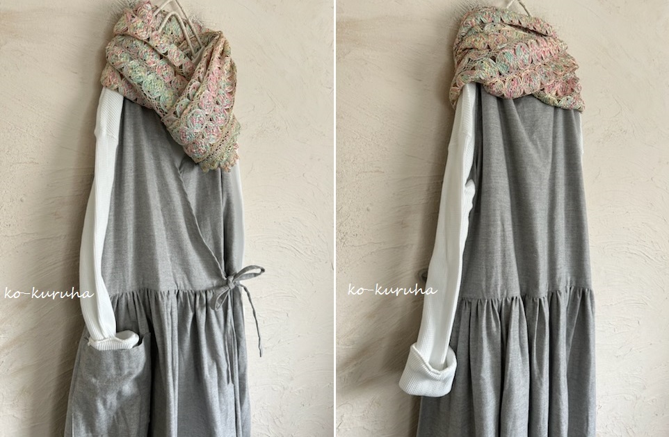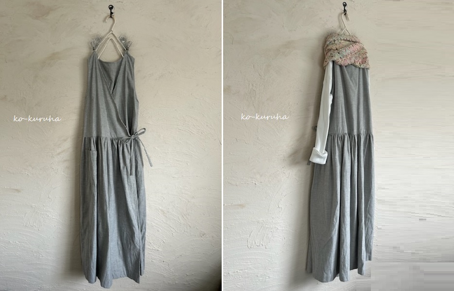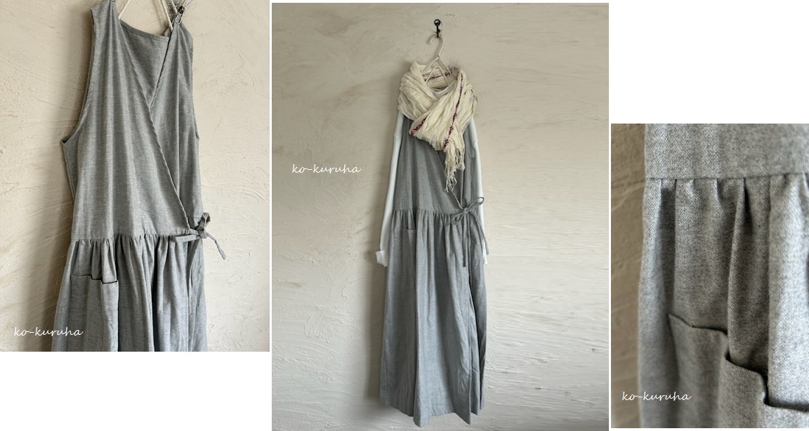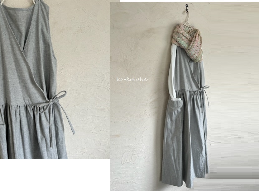 ★先染めフラノ杢グレーコットン。カシュクールノースリーブOP ★ |