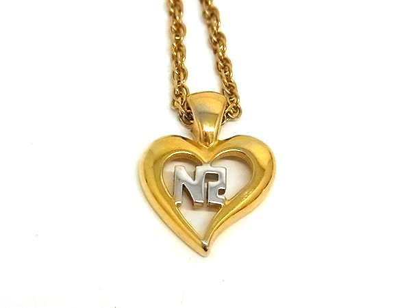 ■美品■ NINA RICCI ニナリッチ ハート ロゴ ネックレス ペンダント アクセサリー レディース ゴールド系×シルバー系 DK4317