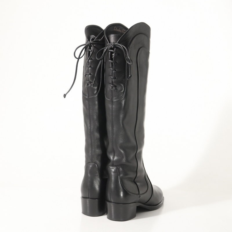 | MH4192▼イタリア製*サルヴァトーレフェラガモ*レースアップ レザーロングブーツ 5.5C(22.5cm相当) 靴 ブラック | |||