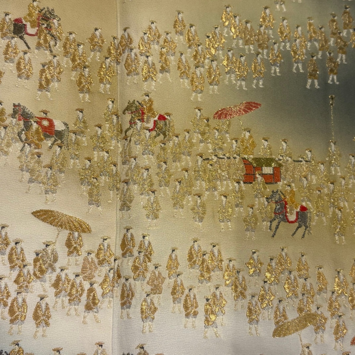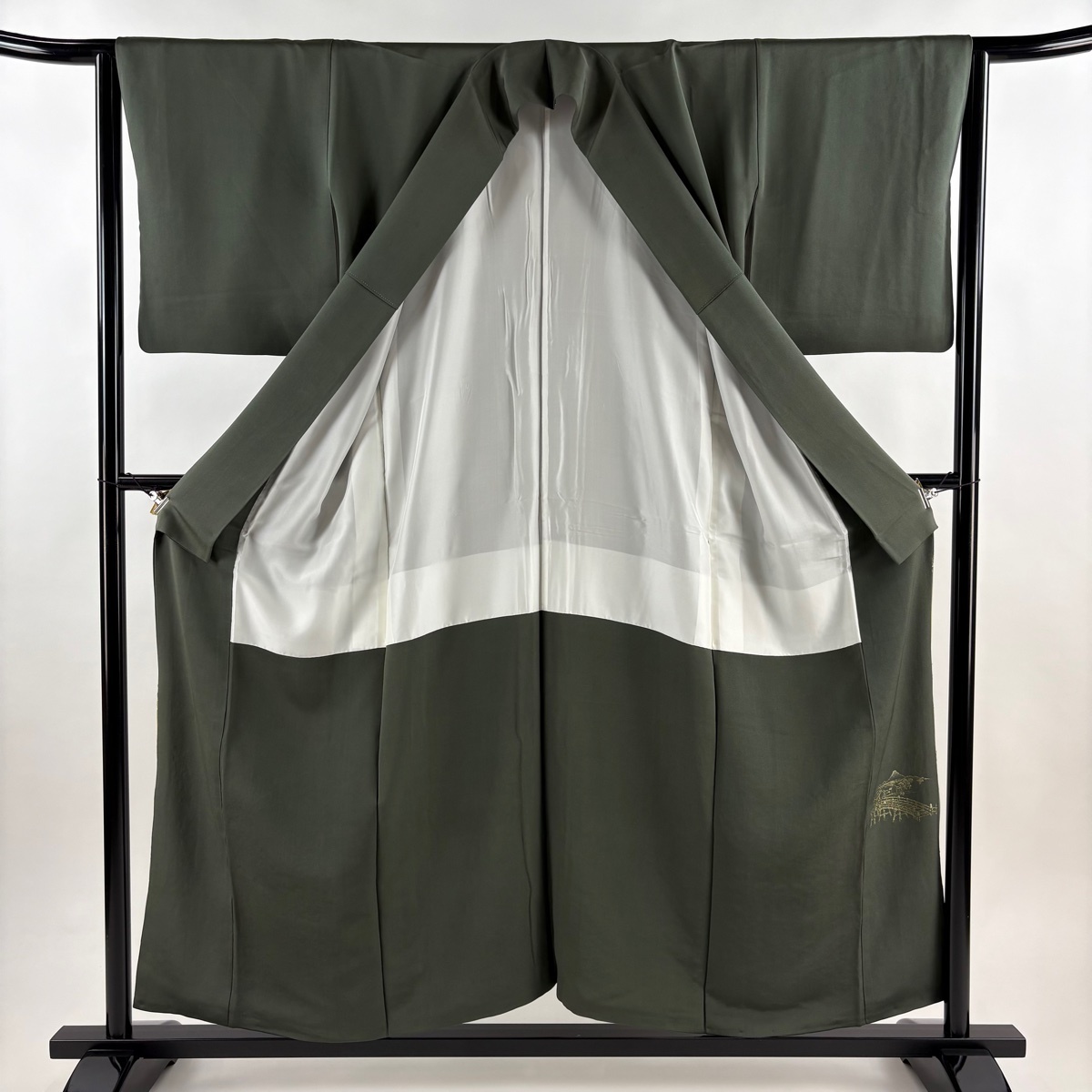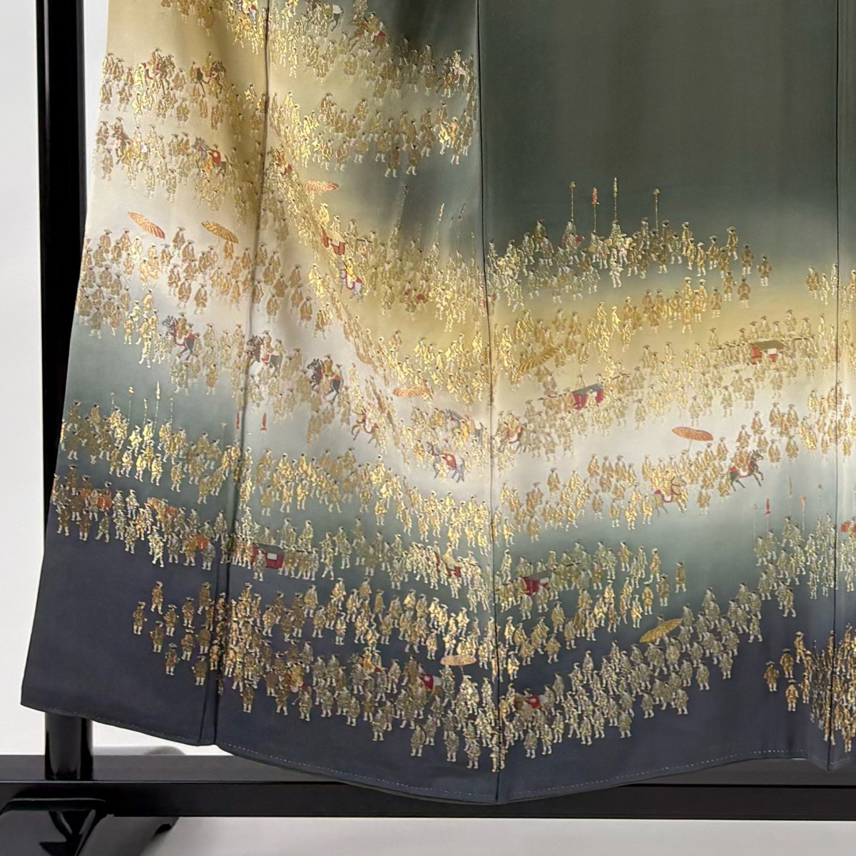 | 色留袖 秀品 大名行列 金糸 灰緑 袷 身丈154.5 裄丈63 S 正絹 【中古】 |