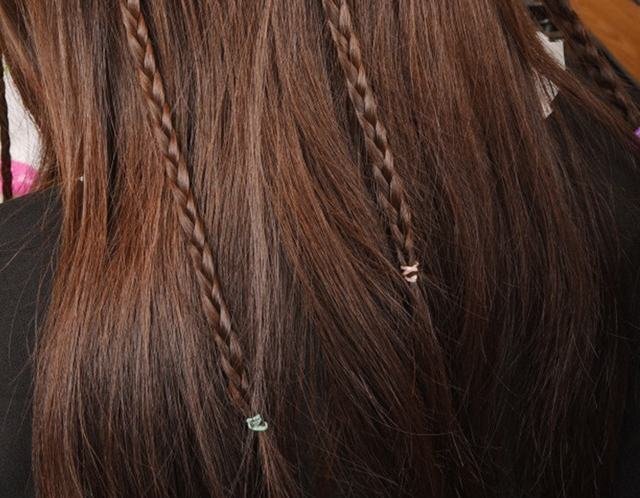 1.アクセサリを使用して、3本の髪を均等に分割します
