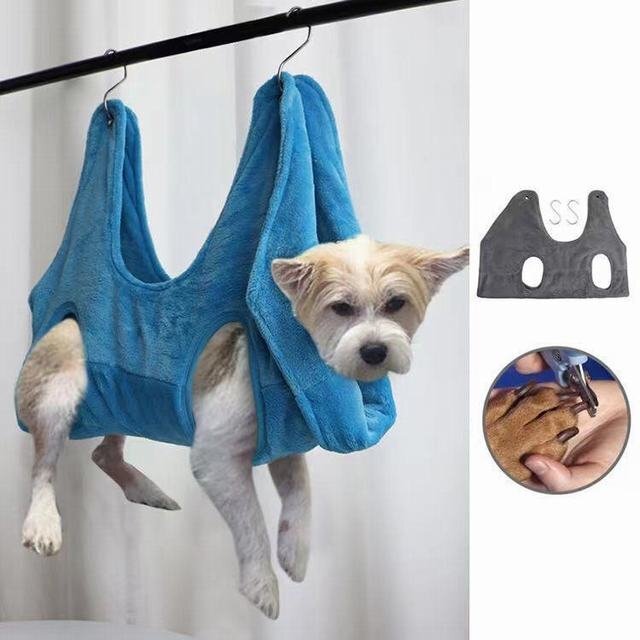 このハンモックをすると、ワンちゃんから足元は見えないので、爪切りやバリカンが怖くない様です。