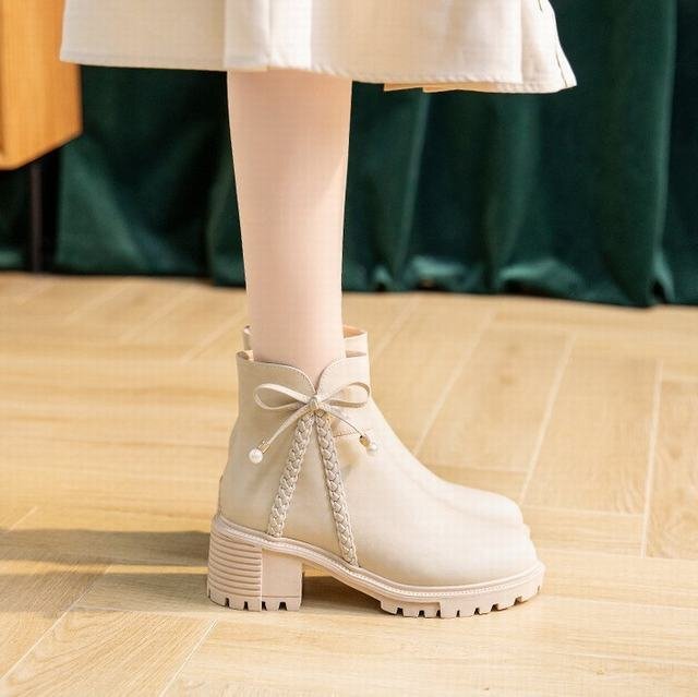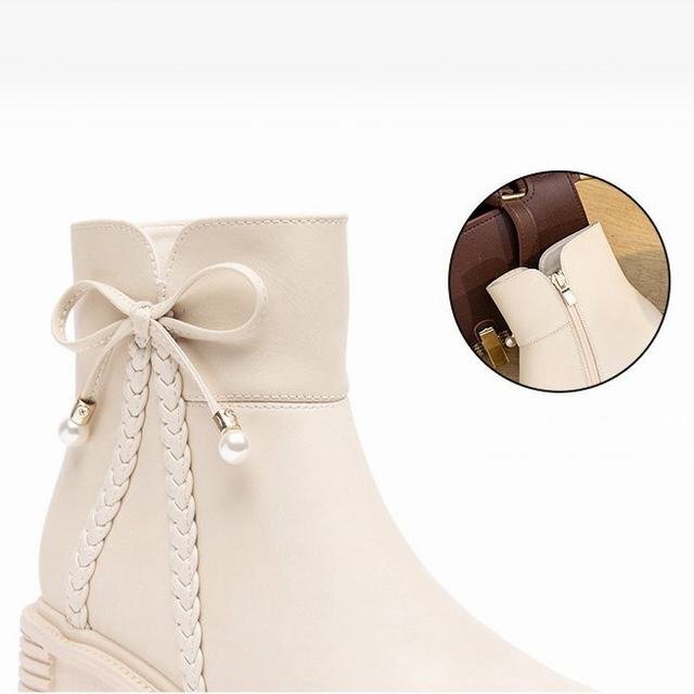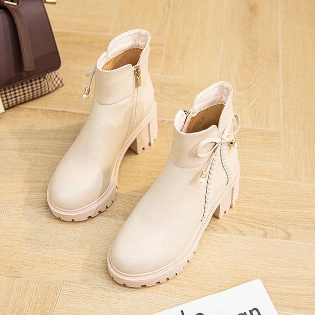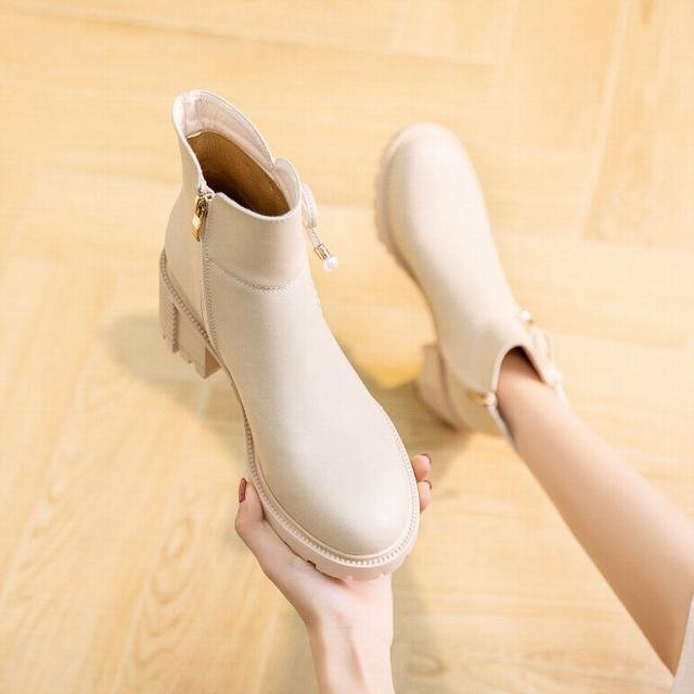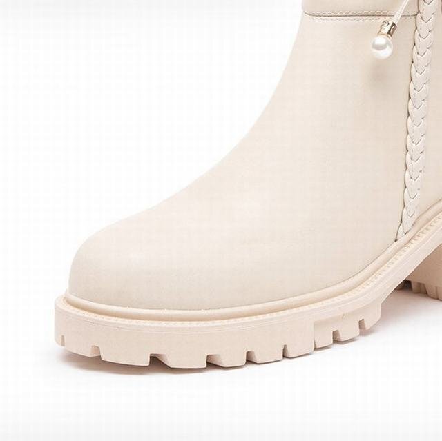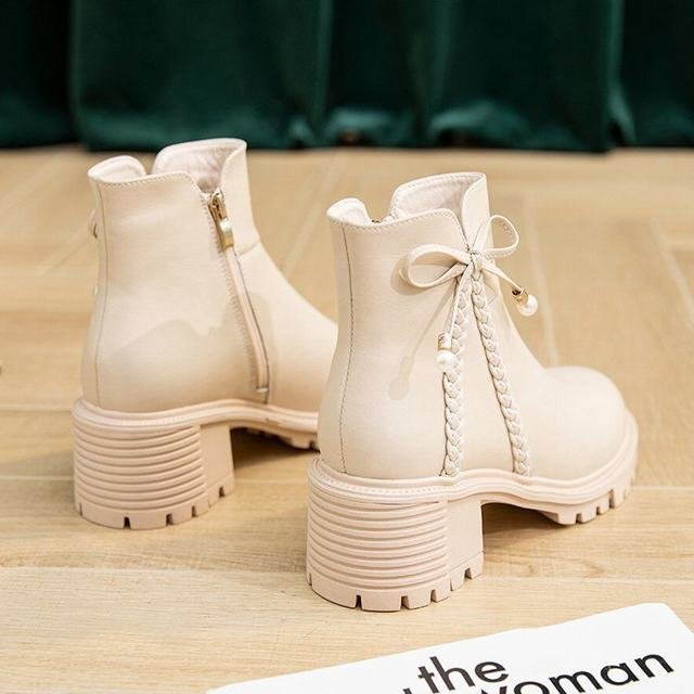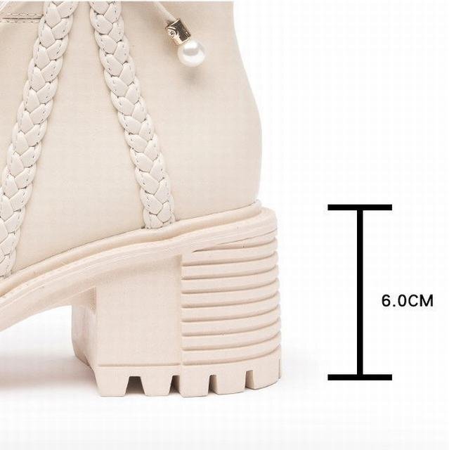 ワークブーツ レディース シューズ 革靴 PU革 幅広 撥水 防滑 太ヒール 軽量 ゆったり 歩きやすい 美脚 通気性 韓流 米色24cm