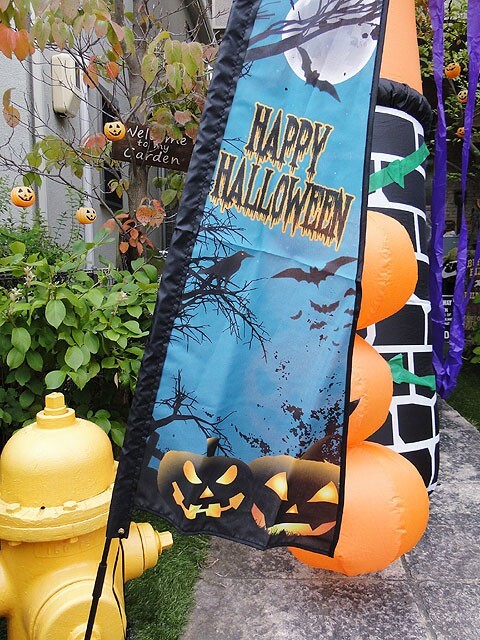 先端がキュッとカーブしたアメリカでよく見かけるスタイルのバナーでハロウィンバージョンに仕上げたのがコレです。