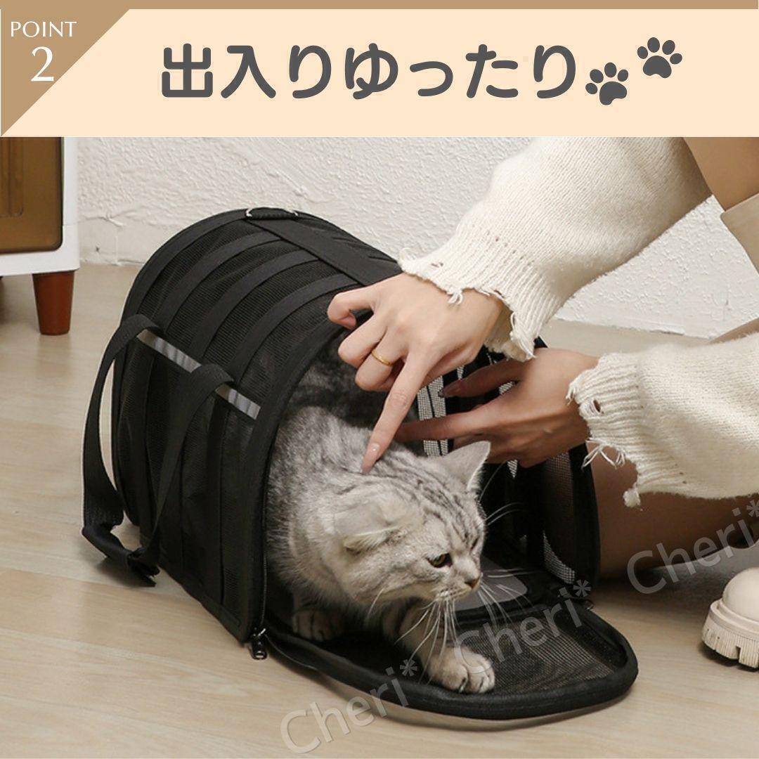 ・大きく開くファスナー設計なので、ペットの出入りがスムーズで、移動に慣れていない子でも安心して使えます。