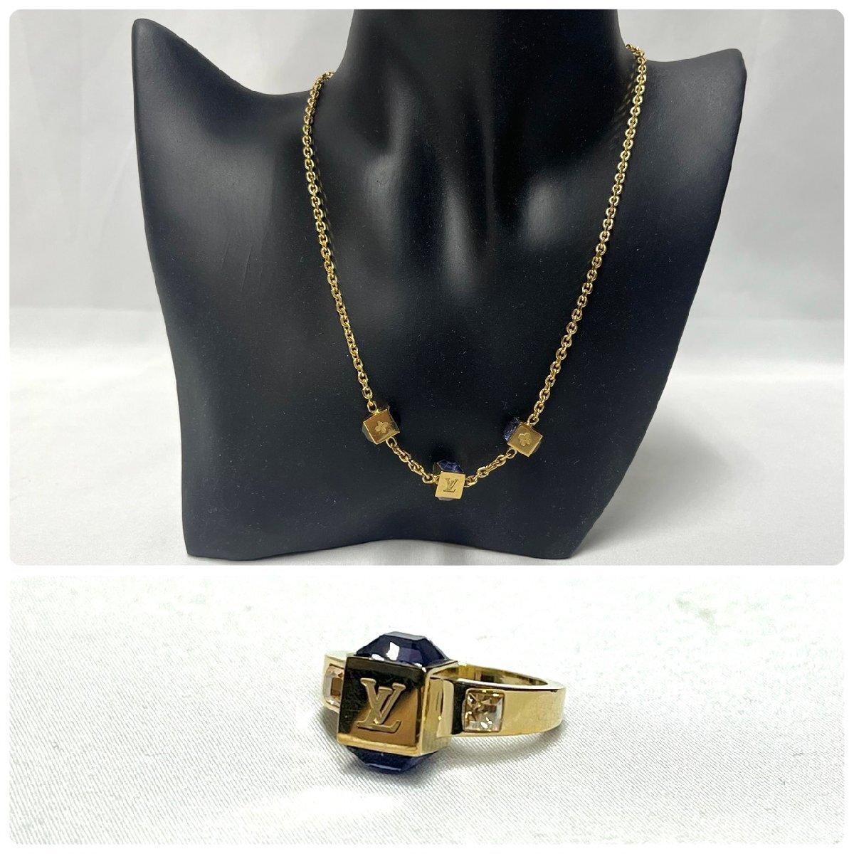 ♪LOUIS VUITTON ルイヴィトン アクセサリー まとめ2点 M65096 コリエギャンブル ネックレス/M65098 バークギャンブル リング ゴールド系♪