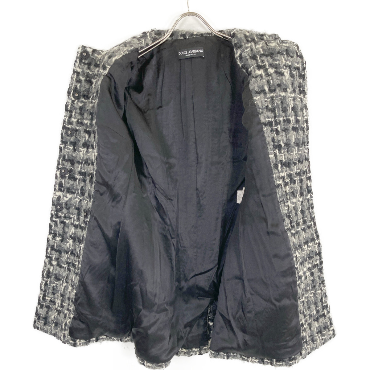 【美品/国内正規】DOLCE&GABBANA ドルチェアンドガッバーナ F0Q16T ツイード ダブルブレスト コート 40 グレー レディース