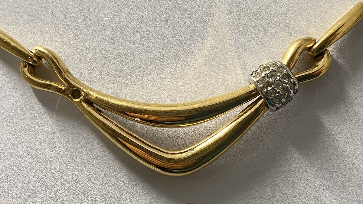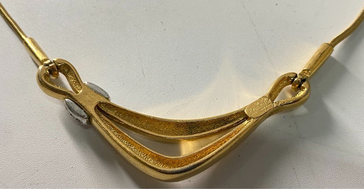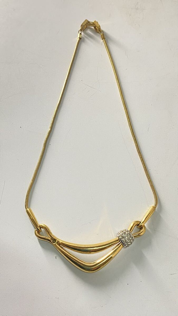 GIVENCHY(ジバンシィ)のゴールドトーン・ネックレスです。V字型のデザインにクリスタルの装飾が施されており、ヴィンテージ品として取引されていることが多いアイテムです。