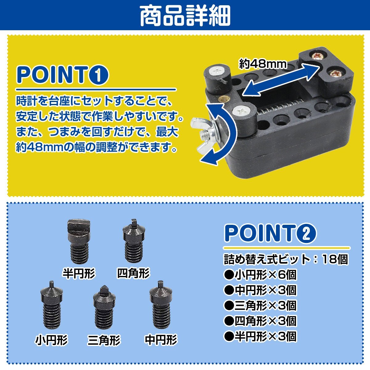 商 品 説 明初心者でも使いやすい、腕時計の電池交換・修理に便利な