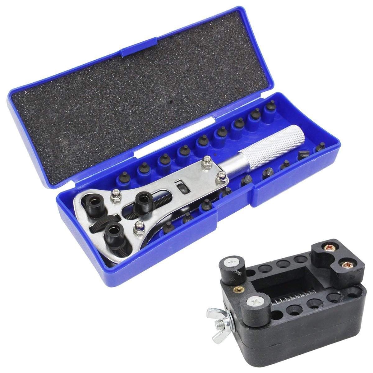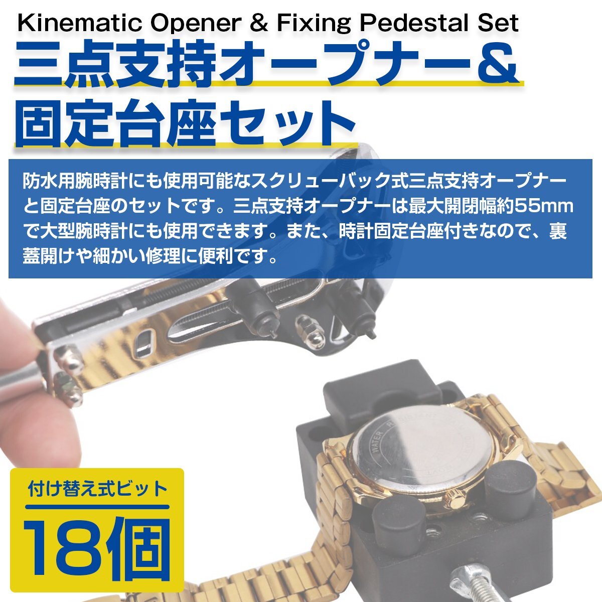 オープナー 固定台座 セット 三点支持 スクリューバック 6種 18ビット 開閉 裏蓋 開け器 腕 時計 電池交換 工具 修理 精密