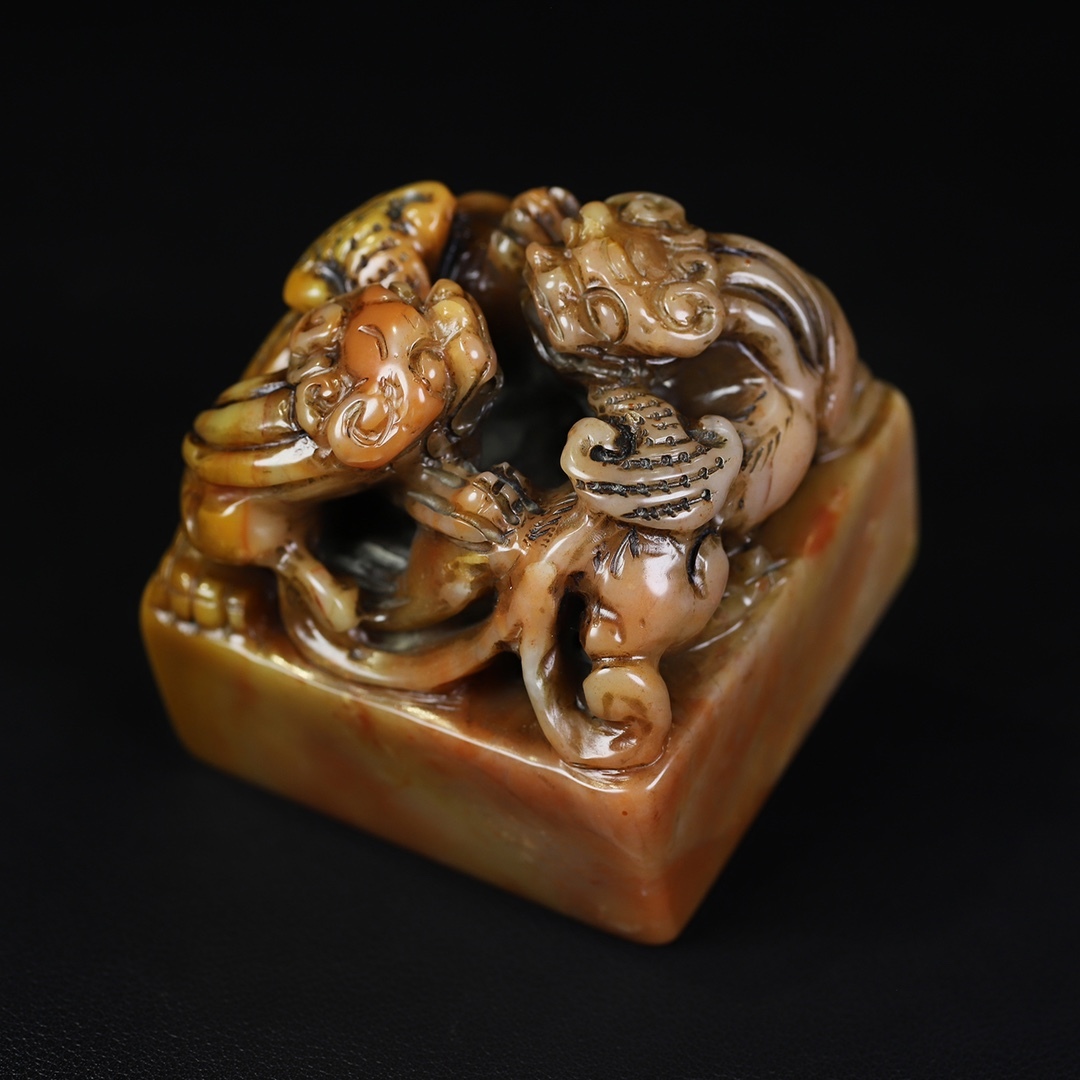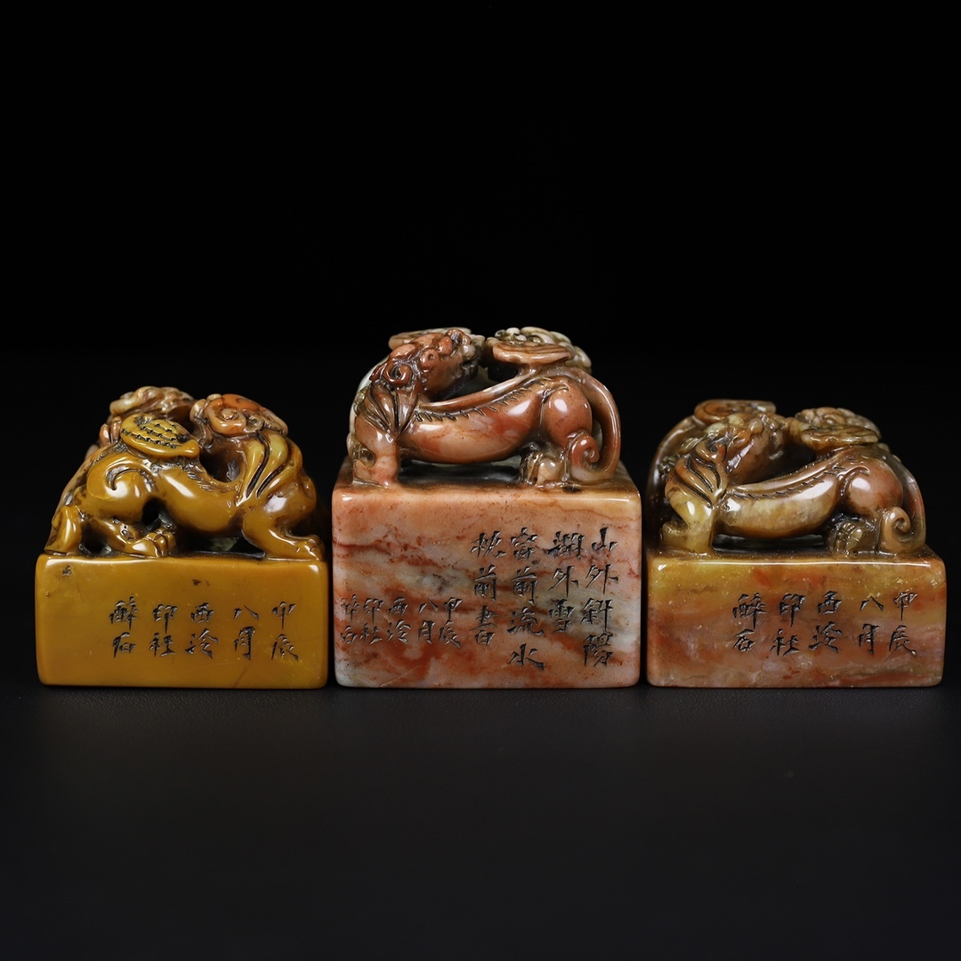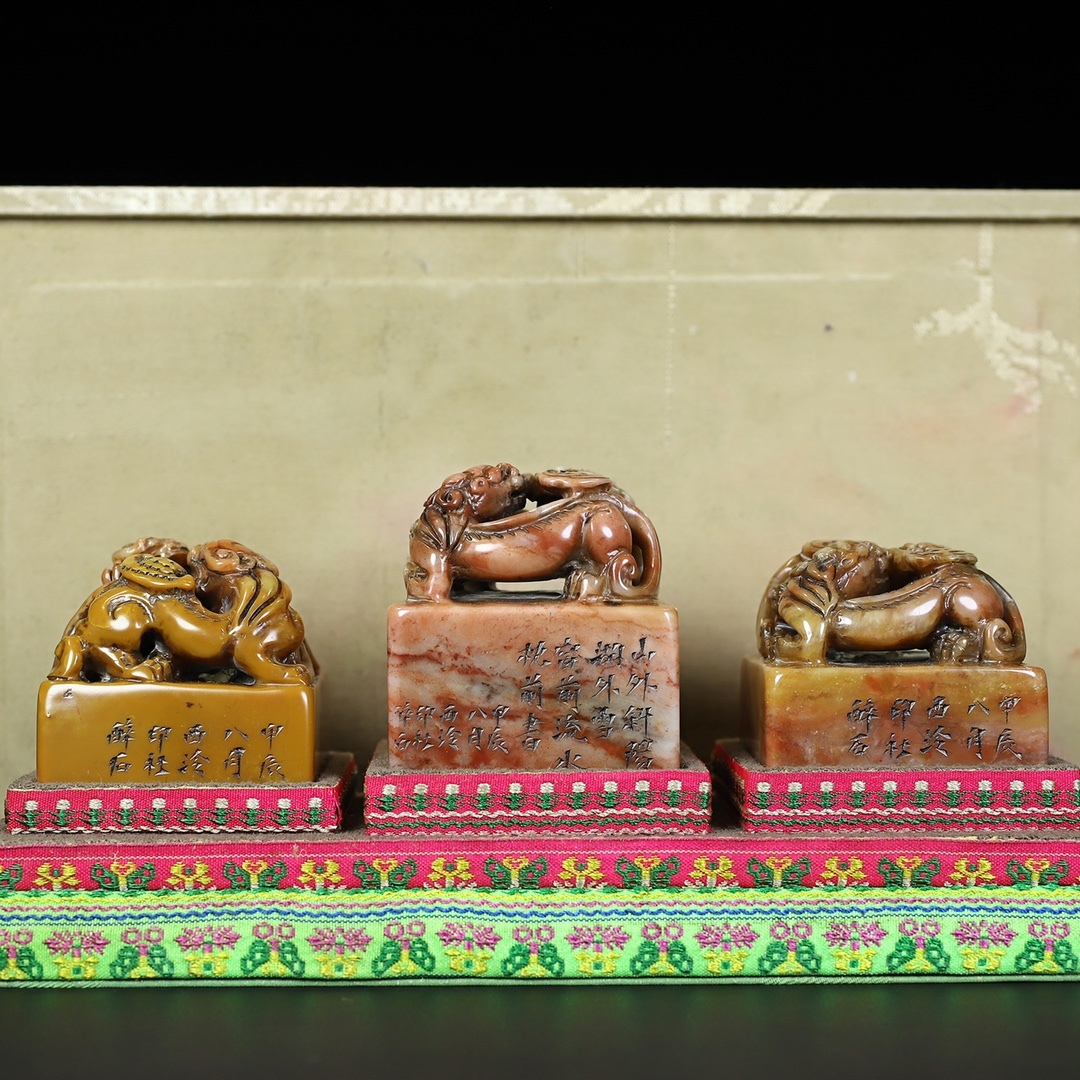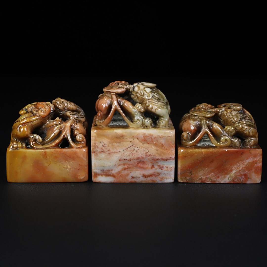 館蔵 寿山石彫 瑞獣紋 印鑑 套章 天然石 手彫 篆刻 古印材 極細工 中国古玩 古美味 骨董品 中国古美術 古美味 蔵出
