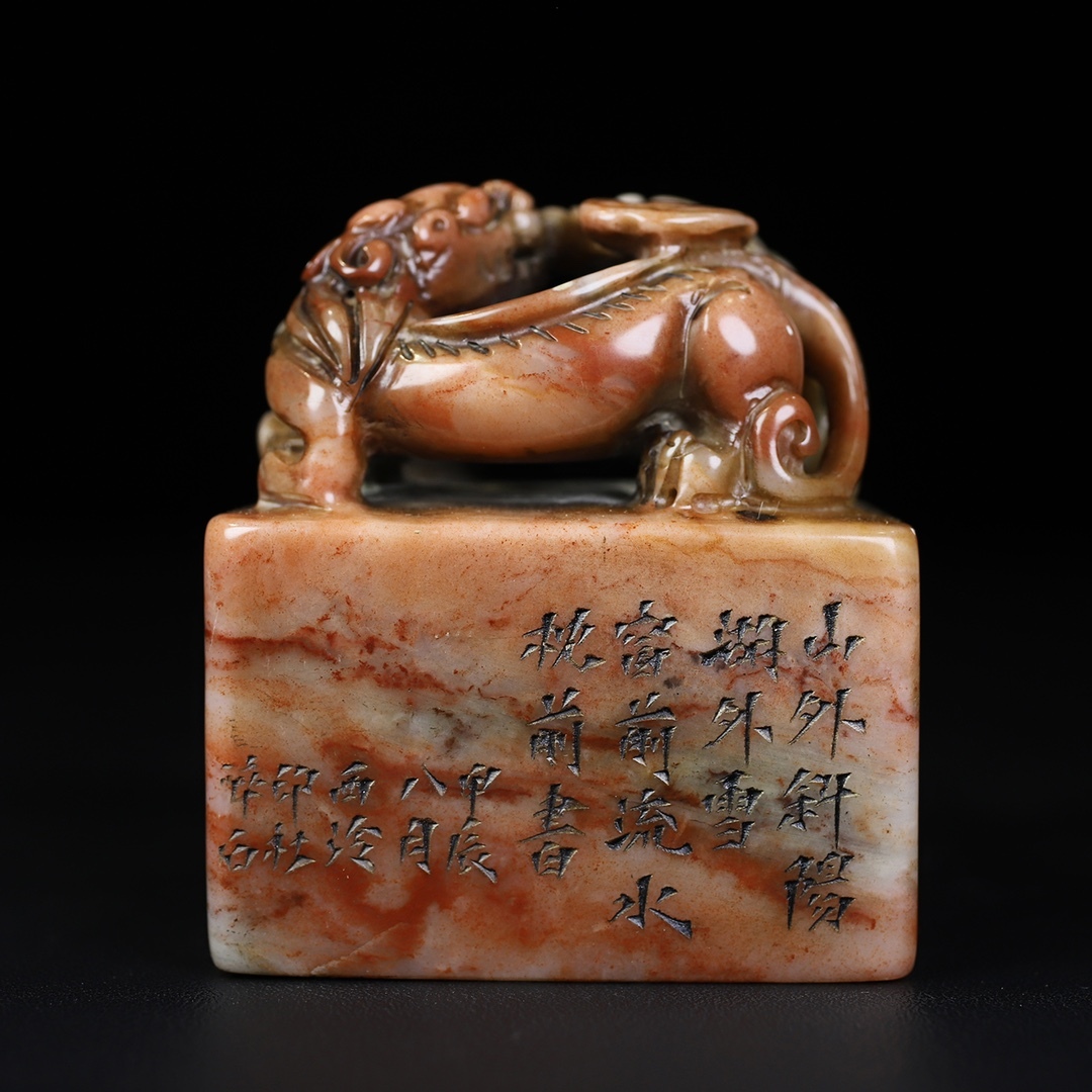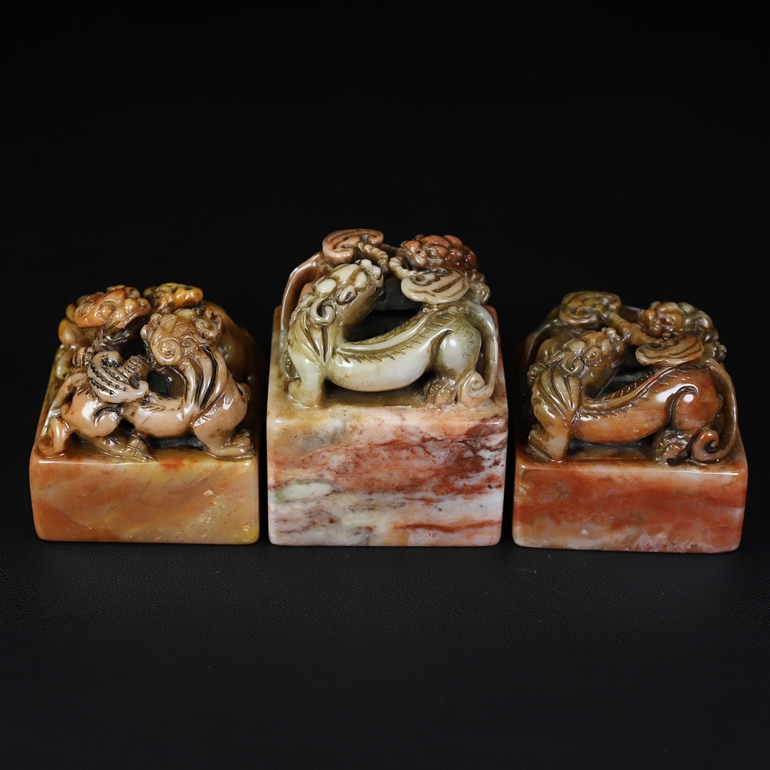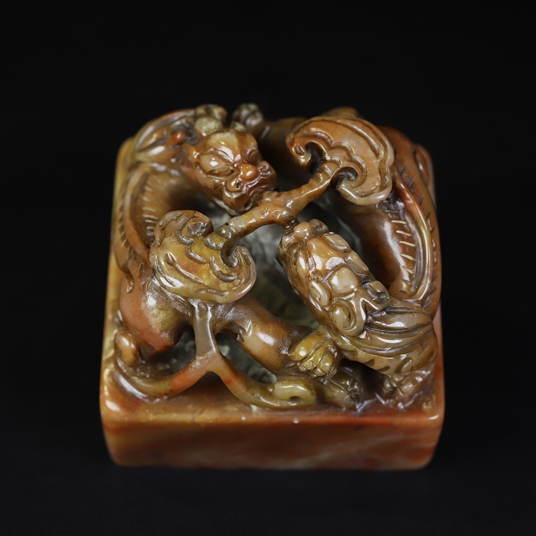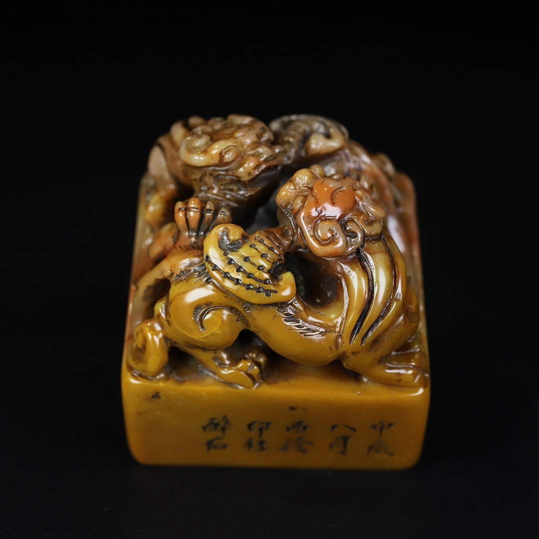 館蔵 寿山石彫 瑞獣紋 印鑑 套章 天然石 手彫 篆刻 古印材 極細工 中国古玩 古美味 骨董品 中国古美術 古美味 蔵出