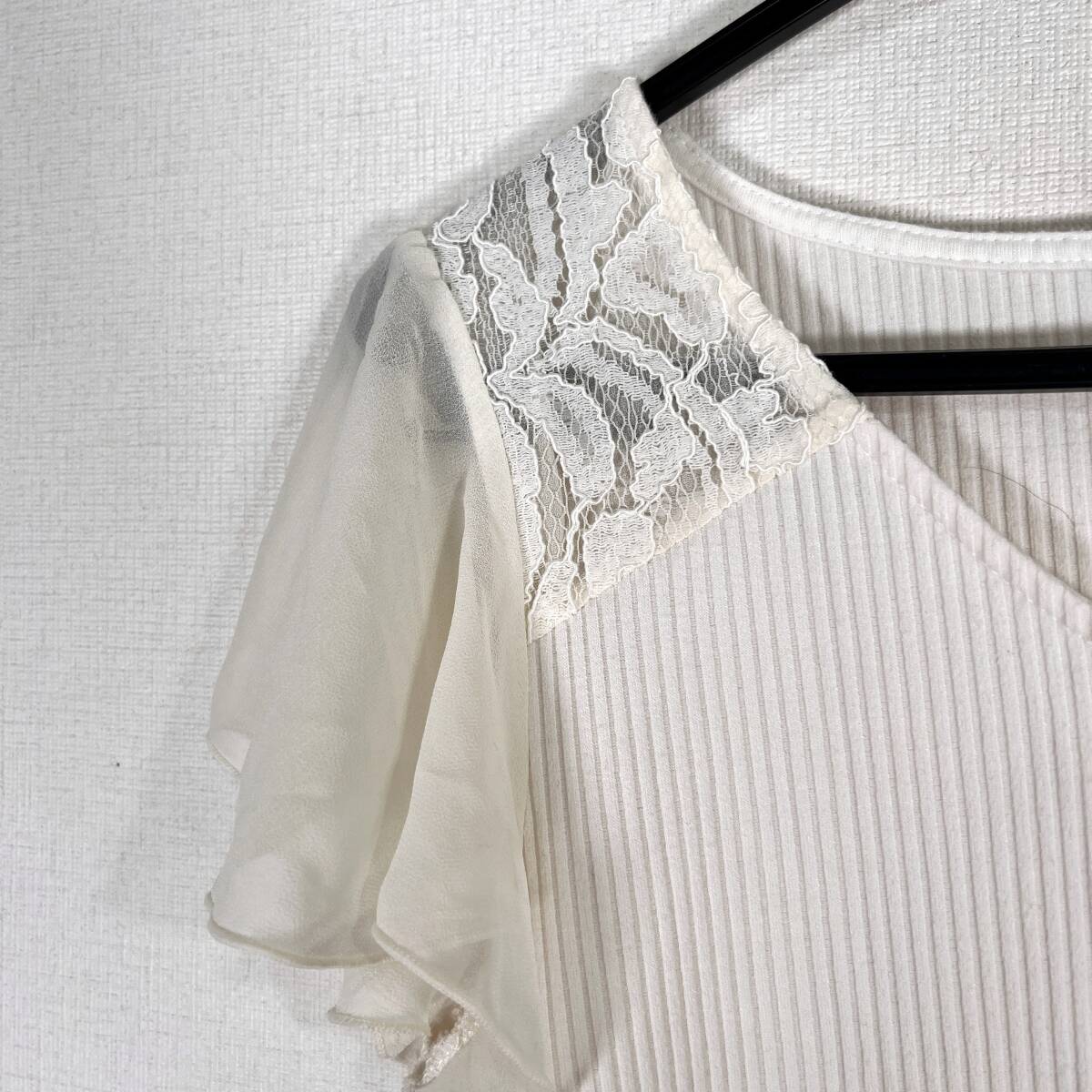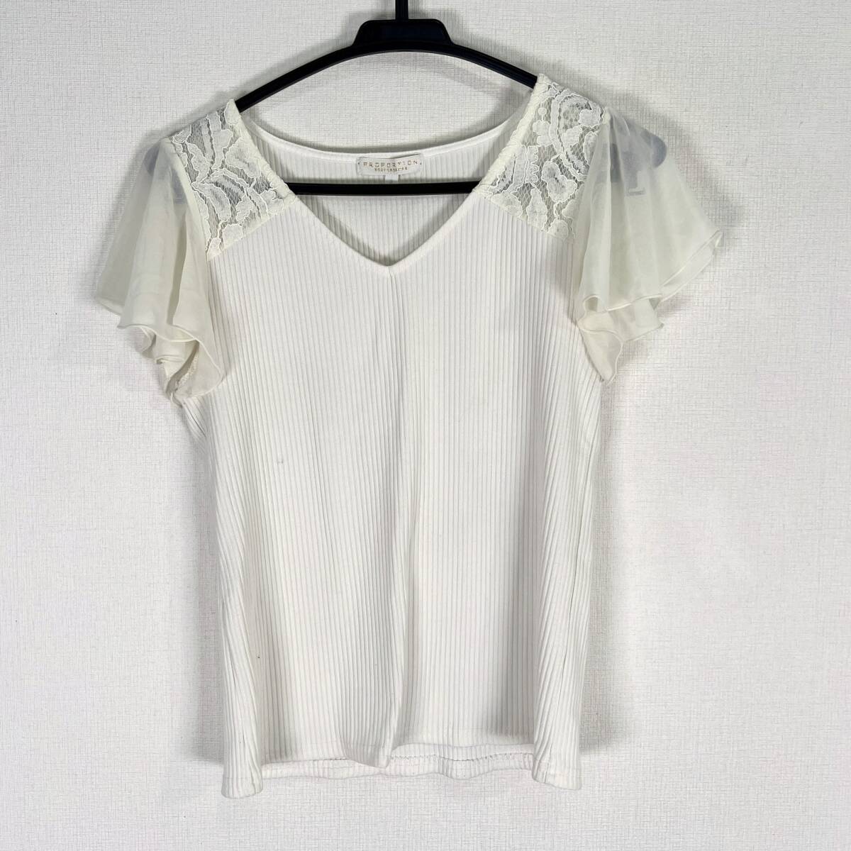【PROPORTION BODY DRESSING】プロポーションボディドレッシング アイボリー系 レース切替シフォン袖 リブカットソー レディース 3【c037】